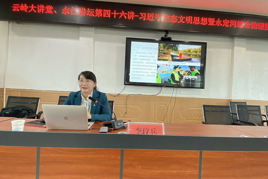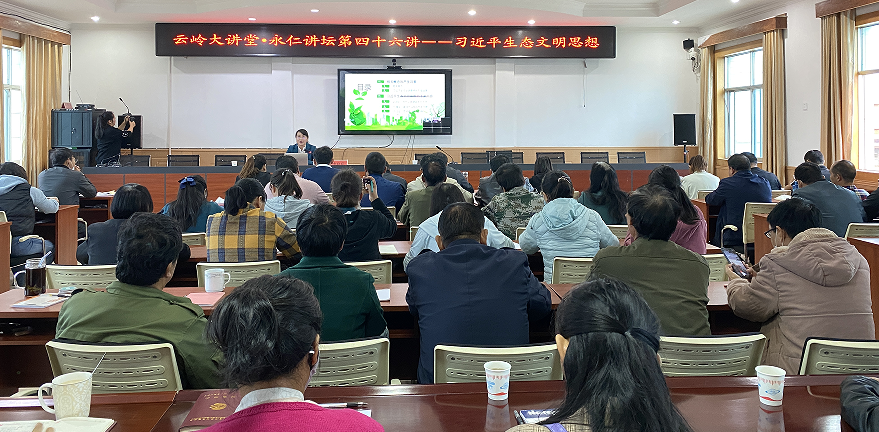 2022年5月6日上午8:30,昆明市委党校社会和生态文明教研部博士、副教授李玟兵老师到永定镇作了《云岭大讲堂.永仁讲坛第四十六讲——习近平生态文明思想》专题宣讲,永定镇全体干部职工及各村社区人员170余人聆听讲座。
