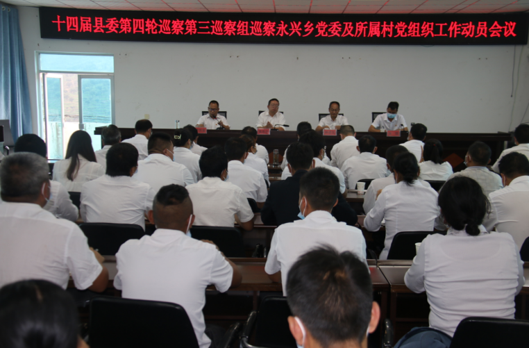 根据十四届县委关于巡察工作的统一部署,2022年6月27日下午,县委第三巡察组巡察永兴乡党委及所属村党组织工作动员会在乡党政综合楼四楼会议室召开。县委巡察工作领导小组成员、县纪委副书记、县监委副主任吴忠云,县委第三巡察组组长钟进文及巡察组工作成员,永兴乡党政班子成员出席会议,乡部分干部职工(含上管站所负责人)、离退休老干部代表、各村四职列席会议。永兴乡党委书记李国富主持会议。