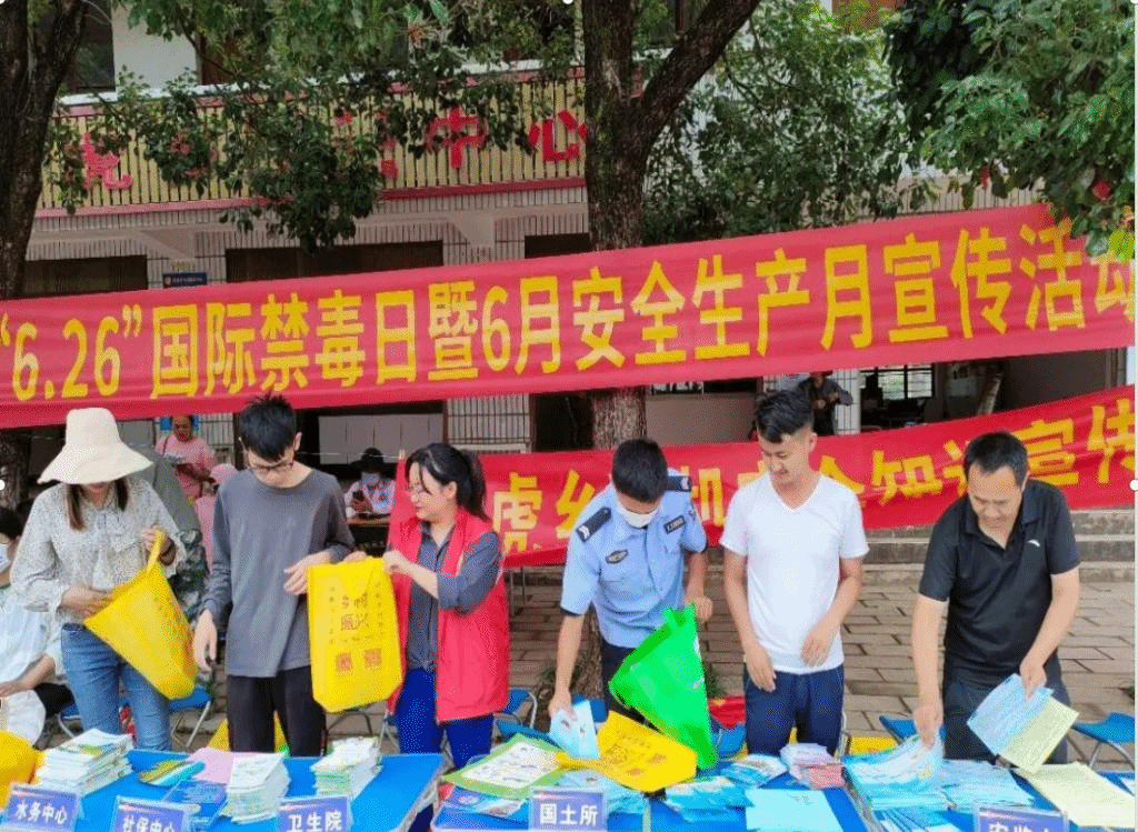 此次宣传活动结合6.26国际禁毒日、6月安全生产宣传月、打击整治养老诈骗专项行动等主题,组织乡综治办、水务服务中心、社保中心、安监办、征兵办、猛虎司法所、猛虎派出所、猛虎国土所等中心(所)开展宣传活动。据悉,活动中共发放禁毒宣传材料、防养老诈骗知识材料等各类宣传品260余份。