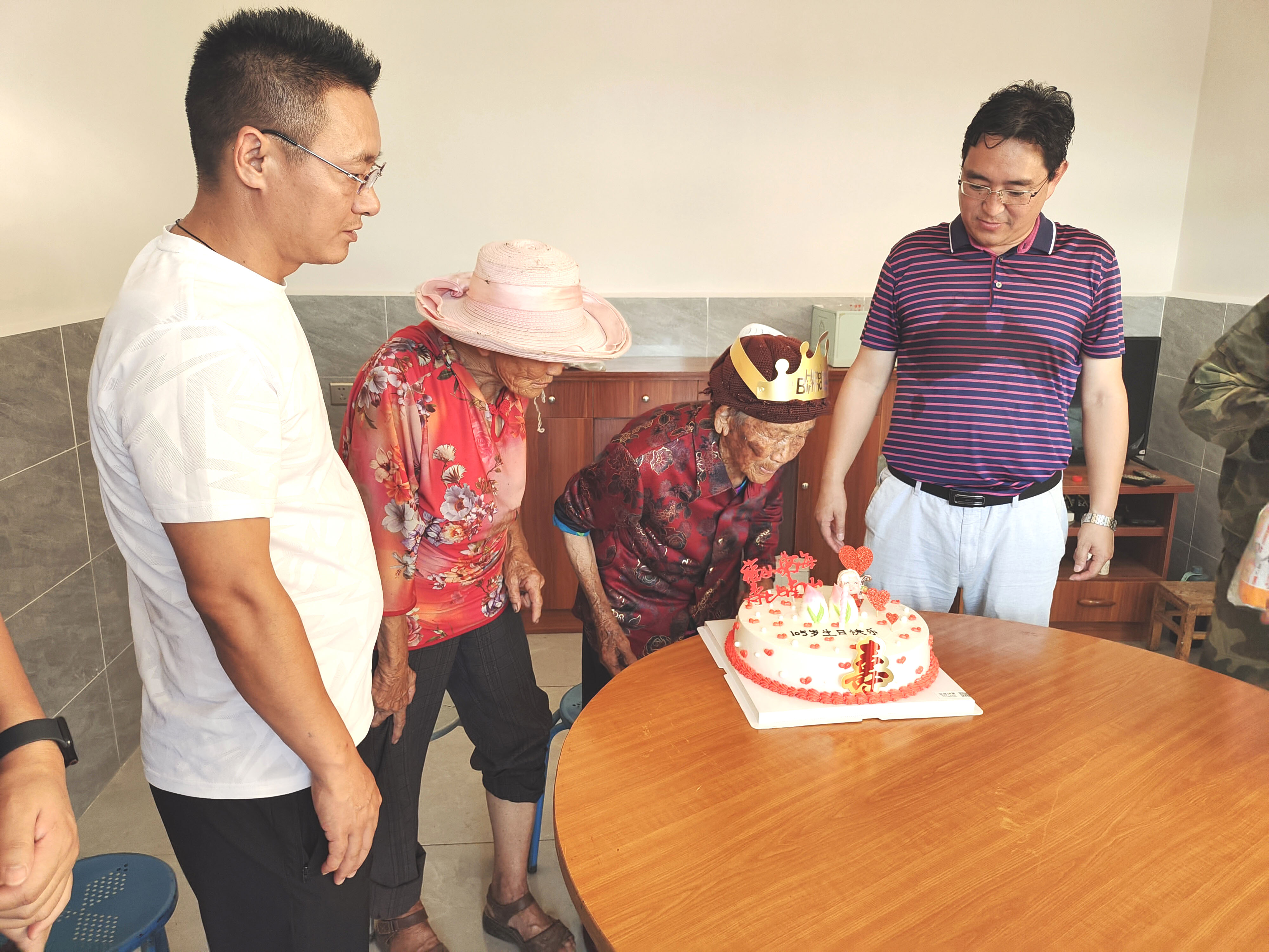 2022年7月13日,对于居住在永定镇糯达村委会的杨有珍老人来说,是一个特别的日子,她不但迎来了105岁生日,更迎来了永仁县委和永定镇党委政府、糯达村党总支一行同志为他送来的浓浓关切之情。县委蒋先常副书记和镇村干部一行人不仅与百岁老人一起吹生日蜡烛、齐唱生日快乐歌,还亲切地询问老人的生活情况和身体状况,送上慰问品,当得知老人的生活和身体都好时,大家都竖起了大拇指。