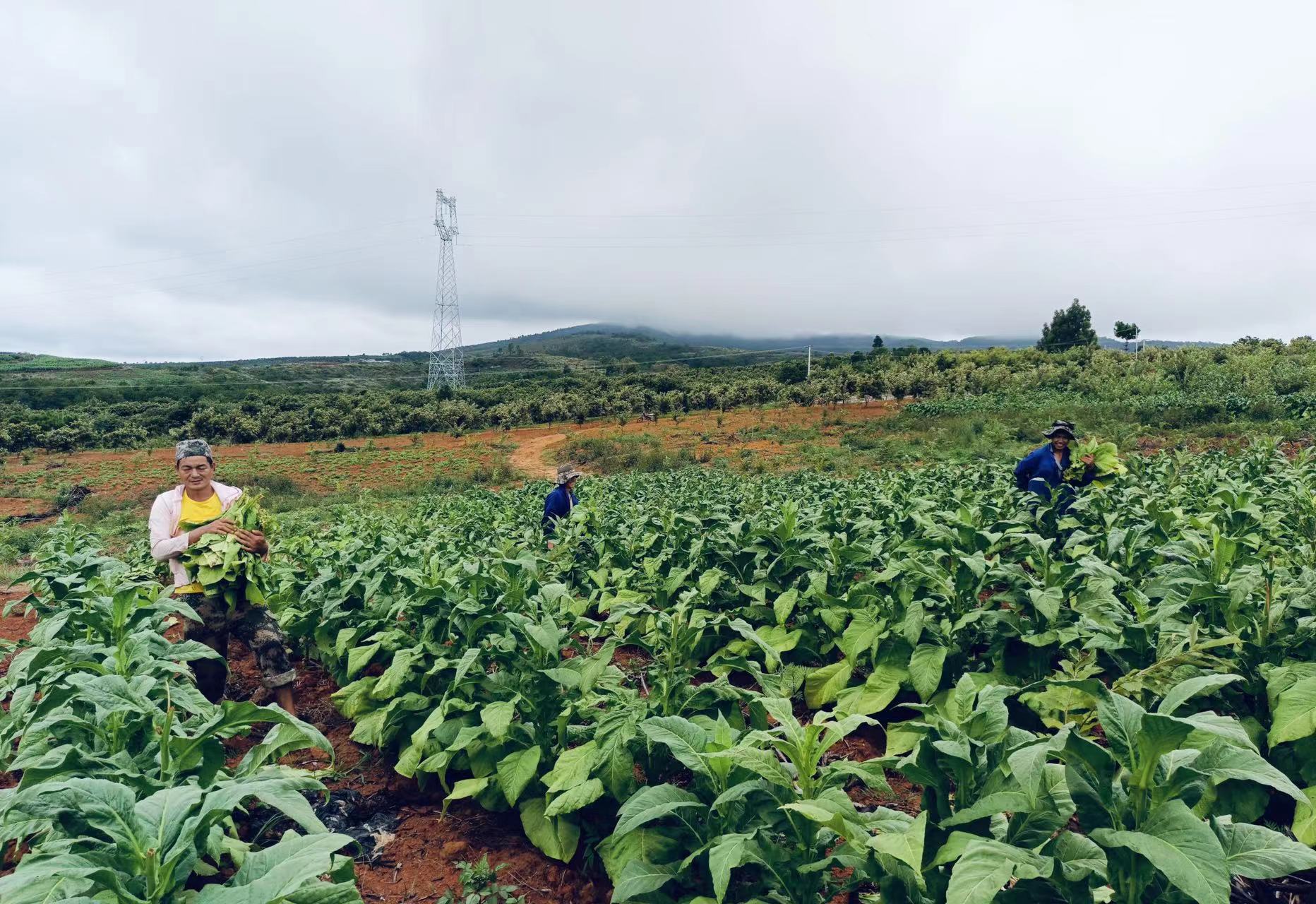 目前,正值烤烟收获的黄金时节。走进永定镇大村小寨,放眼望去,连片烤烟郁郁葱葱齐人高,宽大厚实的叶子在微风中荡起层层绿浪,呈现出一派丰收的景象。烟田里、烤烟房,随处可见烟农们采收、搬运、分拣、上竿、烘烤的忙碌身影。