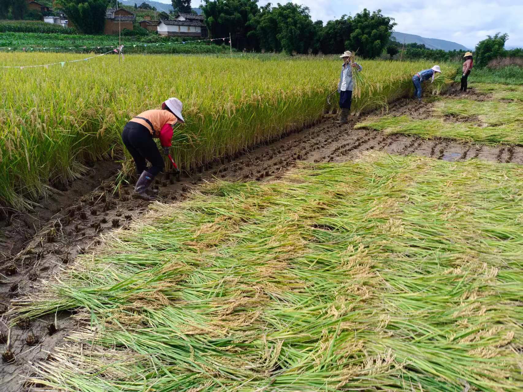 村民杨某一家正在对水稻进行收割,“我们这片地以前都是以种蔬菜为主,今年我们种了水稻,今天是第一天收割,从收割情况来看还是大丰收了,一亩基本达到700公斤以上。”杨某喜笑颜开的说道。