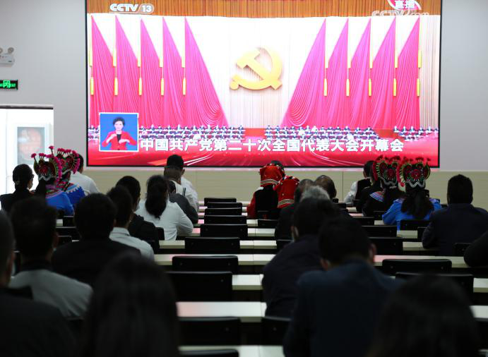 莲池乡党员干部群众集中收看党的二十大开幕实况