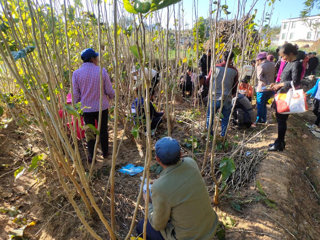 为提升桑农蚕桑种养殖技术,确保蚕桑产业稳步发展,11月22日,格租村召开蚕桑产业技术培训会。在会议室,专家从桑园管理、小蚕共育、大蚕病虫害防治、蚕室消毒、规模化和标准化养蚕技术等方面对蚕农进行详细讲解。在桑园里,专家拿起剪刀修枝剪条,手握锄头弯腰施肥,为农户作了现场操作示范,进一步把课堂的理论转化为实际操作。参加培训蚕桑养殖户达50余户。