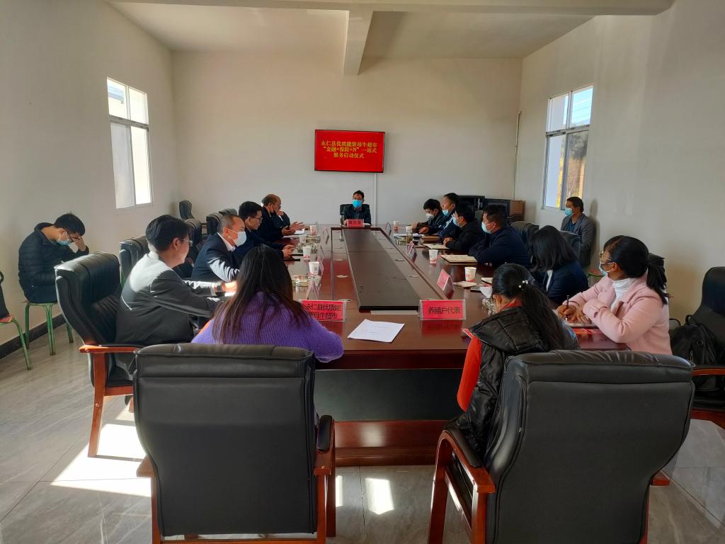 县农业农村局、县国投公司、县农村信用联社、中国农业银行永仁县支行、人保财险永仁支公司、猛虎乡康牧种植养殖专业合作社、宜就镇、猛虎乡相关领导及人员50余人参加启动仪式,县委副书记蒋先常出席会议。