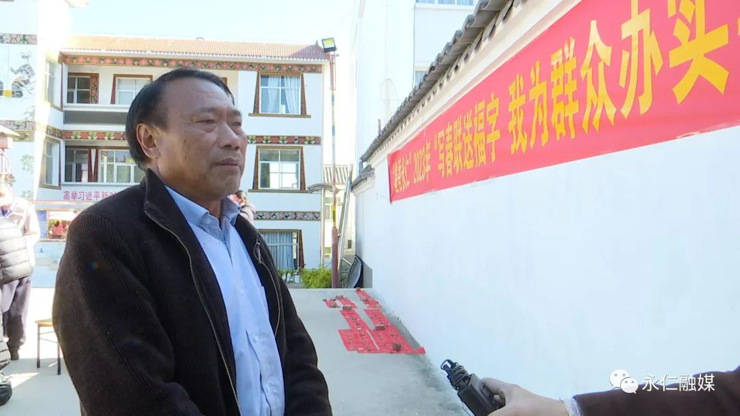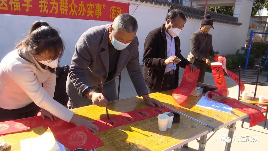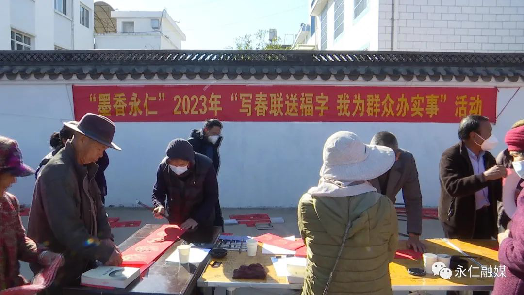 永仁县书法协会副会长殷朝科告诉记者:“在新春佳节来临之际,为营造吉祥如意的‘墨香永仁’新春文化氛围、弘扬向上向善的道德风尚,我们积极开展‘写春联送福字 为民办实事’活动,把吉祥祝福送到千家万户,推动永仁“墨香”文化取得新进展。”