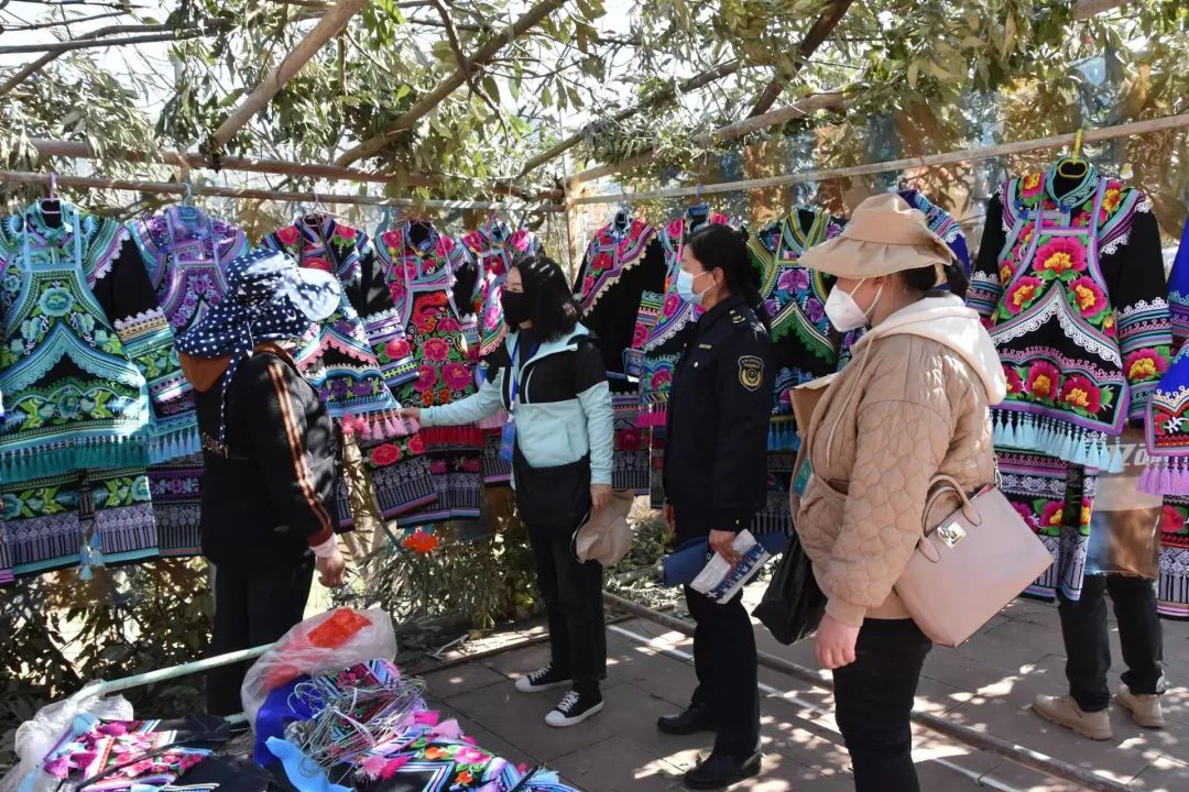 监管护航提升包容度。组建市场监管工作专班,超前行动,统一规划了74个固定摊位,划分为小吃区、彝绣区、百货区,两列整齐的青棚将直苴商贸街打扮得更具彝家特色,实现颜值和能力双提升,让当地群众和游客在赛装赛美中享受极大的便利。青棚之下,忙碌的身影、拥挤的人群将人间烟火演绎得淋漓尽致。深化为民服务,灵活安排增设11个临时摊位,提升监管温度。来自昆明、大理及楚雄周边的商户,在正月十三就已先后入驻,赛装节当天有24户小吃、12户彝绣、49户百货共85户摊贩开展经营,部分经营户反映春节前就已到直苴实际考察过,早早做足了准备功课。