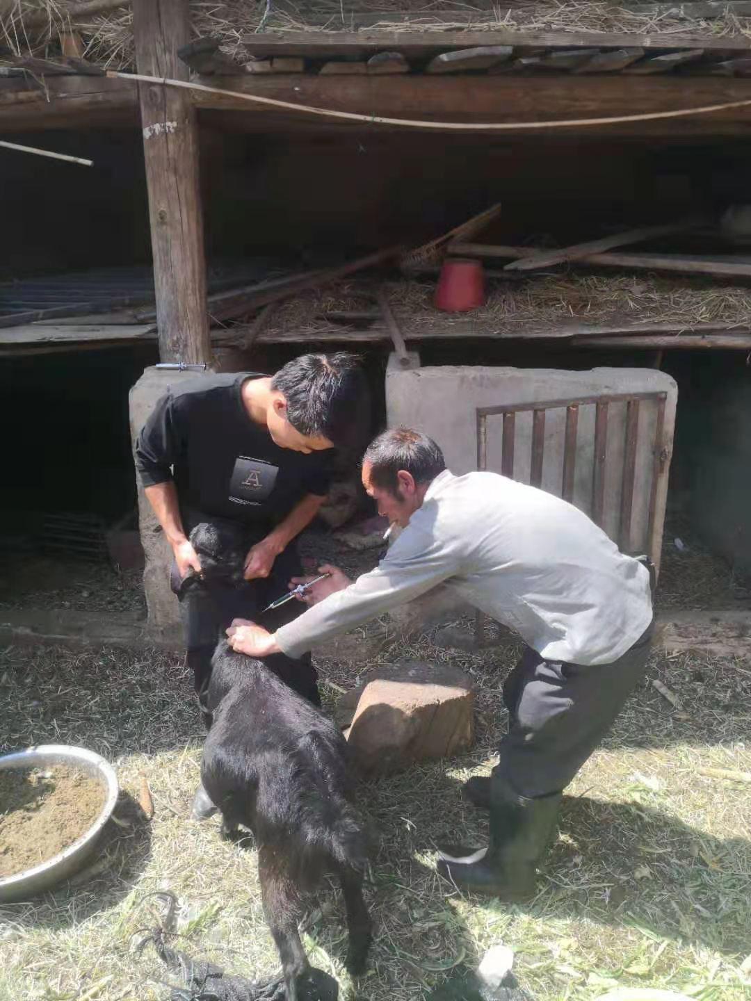 自春防工作启动以来,全乡共有21余名县、乡、村三级畜牧兽医技术人员参与防疫工作。全乡共发放各类疫苗11.295万头份(羽、毫升),其中:猪瘟疫苗1.52万头份、高致病性蓝耳病疫苗1.52万头份、猪O型口蹄疫疫苗3万毫升、牛羊口蹄疫疫苗2.025万毫升、小反刍兽疫苗0.5万头份、羊痘疫苗0.5万头份、狂犬病疫苗0.005万头份、鸡新城疫2万羽、禽流感疫苗2万毫升。全乡共发放各类防疫物资1322瓶(盒、包、套、支),其中:疫苗稀释液860瓶、金属注射针头420盒、棉花7包、酒精7瓶、碘伏7瓶、水鞋7双、肾上腺素14盒。