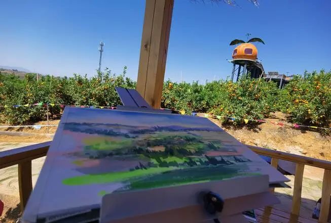 清风相伴,阳光为引,沃柑园硕果累累的景色在画家笔下栩栩如生起来。