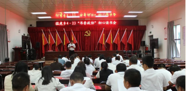 腹有诗书气自华,最是书香能致远。在4·23世界读书日来临之际,猛虎乡组织全乡政协委员和干部职工开展进一步学习党的二十大知识,参与知识竞答、推荐好书及读书分享、诵读经典等丰富多彩的活动。活动现场,大家紧紧围绕“深入学习贯彻党的二十大精神,铸牢中华民族共同体意识”这一主题,各抒己见、积极抢答,结合中华优秀传统文化,谈读书所感、所想、所得。深情的诵读、饱满的情感、活跃的气氛让活动现场高潮迭起,掌声不断。