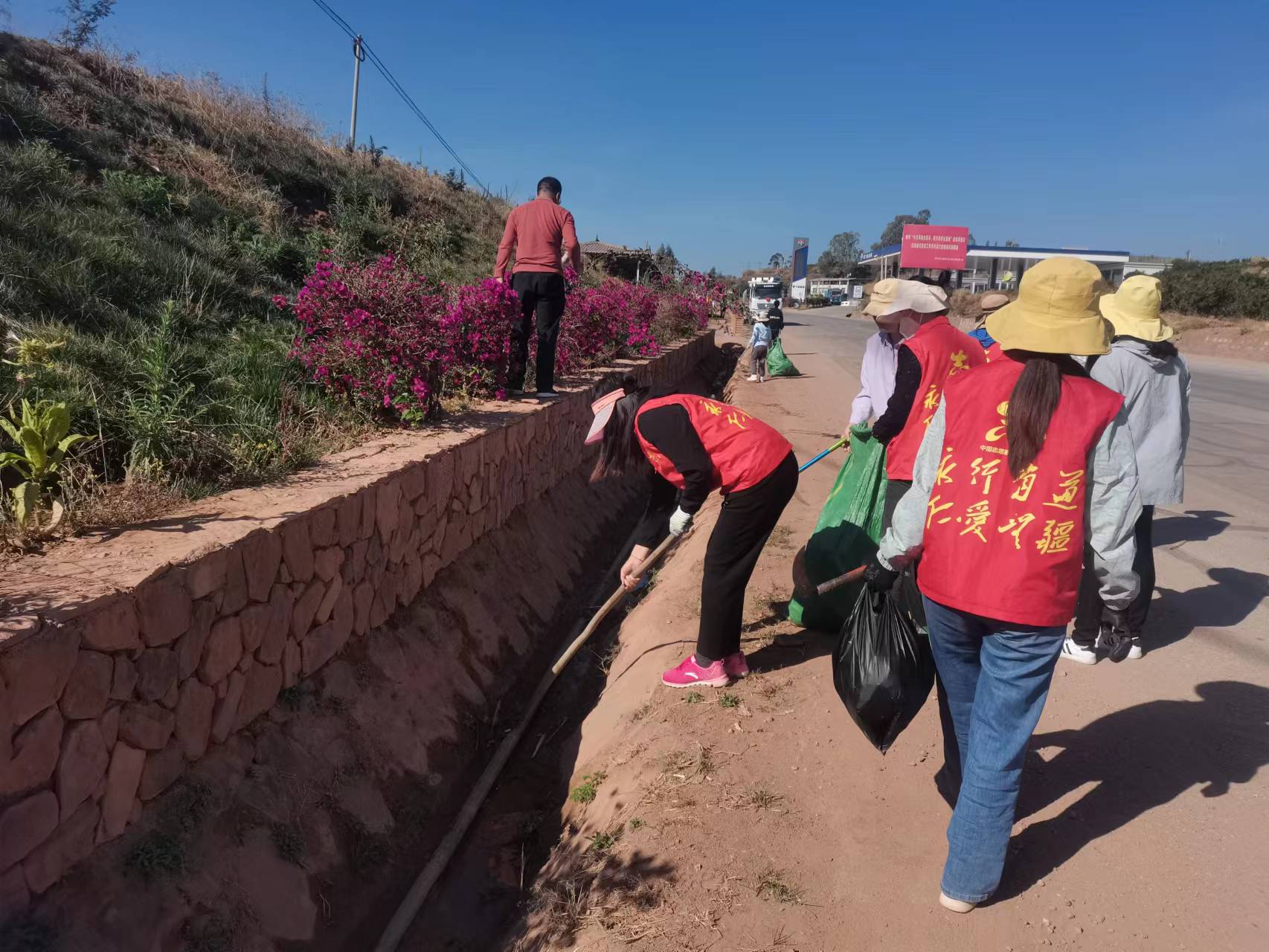 乡村同步,在村间,村组干部带着各村群众拿着扫帚、锄头、镰刀等工具也是干得热火朝天。村上重点对村庄道路两侧的杂草、枯枝以及村民房前屋后堆放的杂物、河道库塘边的白色垃圾、烟头、纸屑等进行了“大扫除”。同时,对农户进行环保、生态、文明宣传,发动群众一起加入志愿服务队伍。