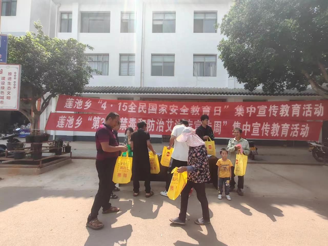 为进一步加大禁毒防艾宣传教育力度,使广大人民群众认清毒品危害,提高识毒、防毒、拒毒、防艾意识,2023年4月7日,莲池乡实践所联合莲池卫生院组织志愿者深入乡村开展禁毒防艾知识普及宣传活动,发放宣传资料300余份,接受咨询100余人。