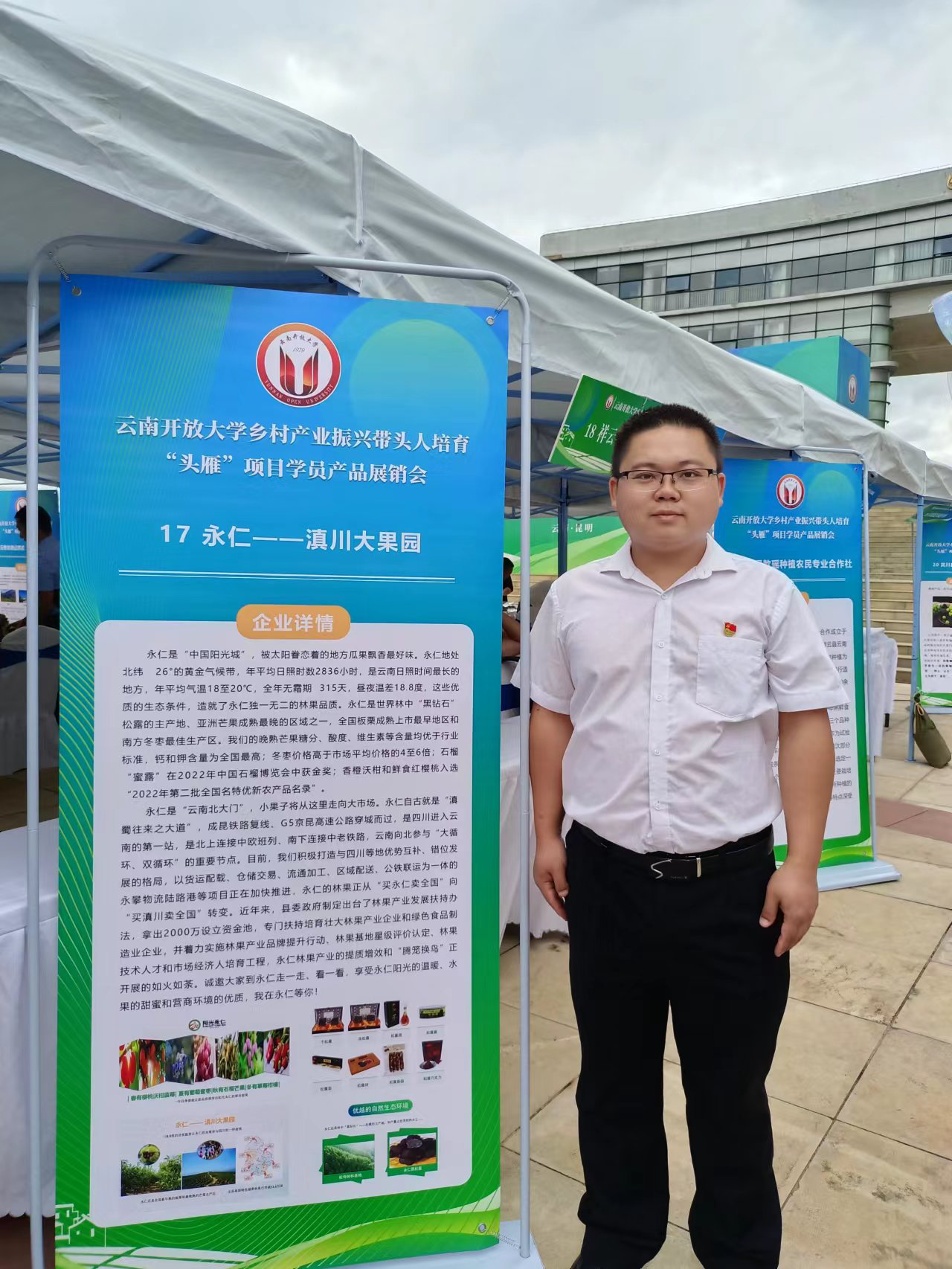 6月26日至7月7日,由农业农村部和云南省农业农村厅联合举办的云南省乡村产业振兴带头人培育“头雁”项目(种植)班在昆明开班培训。永定镇大坝村党总支副书记、永仁县委党校教学点“双提升”学员冯禹靖同学经组织推荐参加了培训。在培训班结业典礼仪式上,冯禹靖代表永仁教学点265名学员作了结业发言,并为永仁阳光城进行阳光产品推荐。