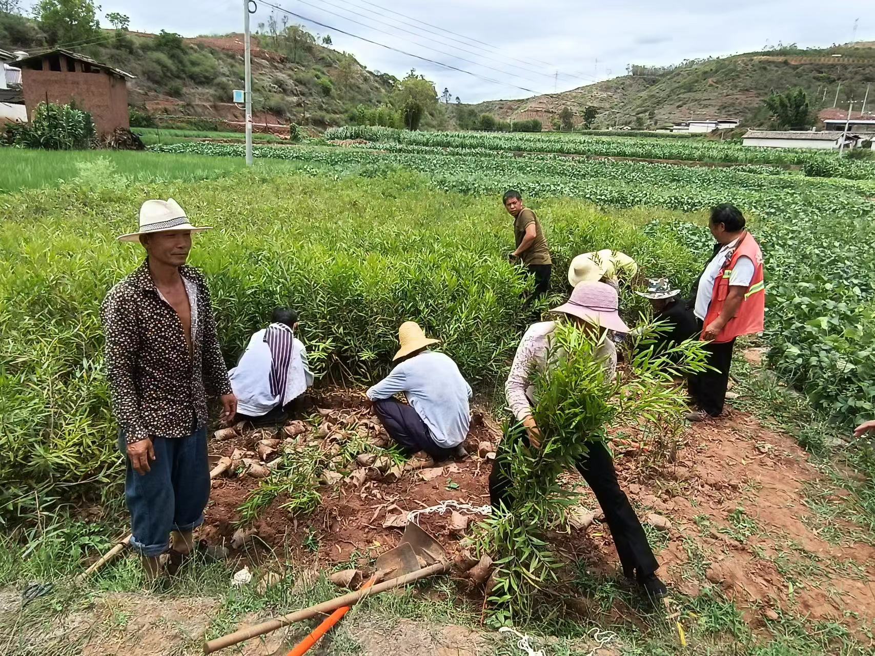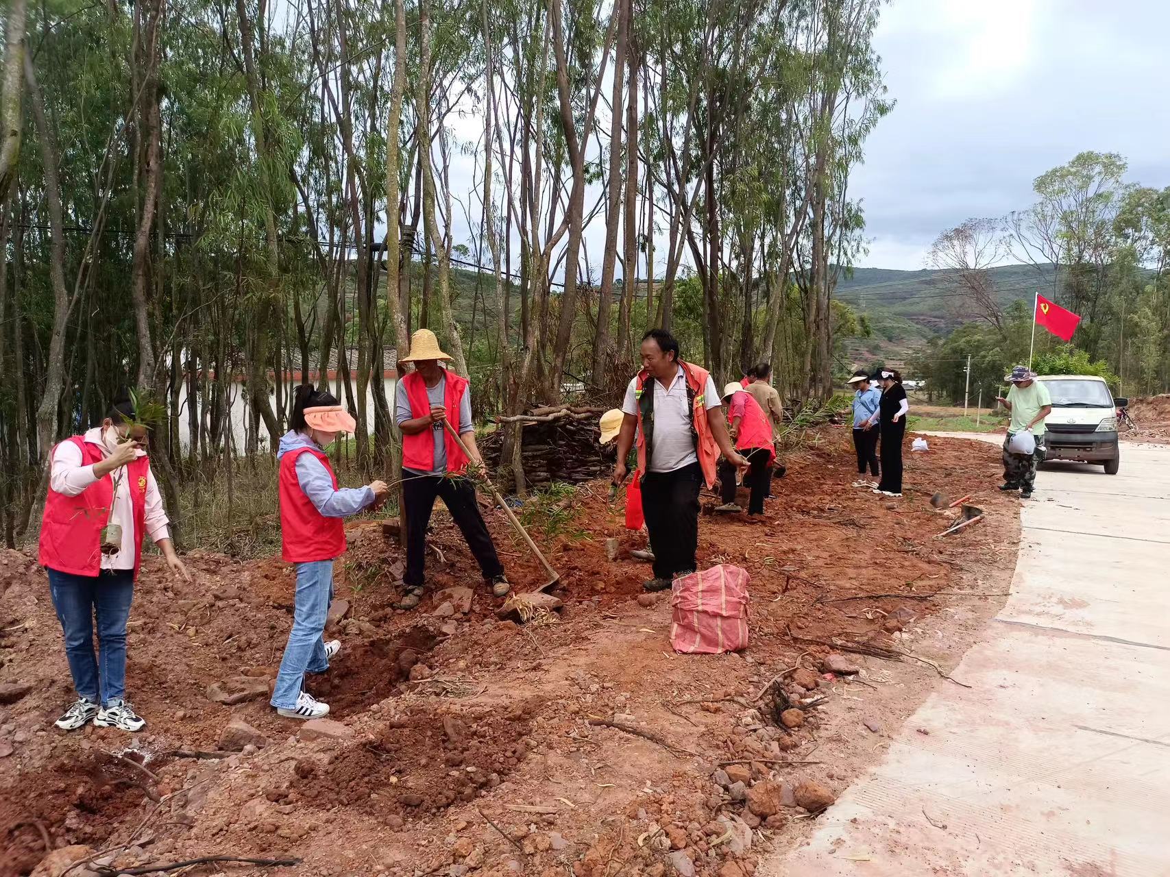 活动中,党员们挥锹铲土、扶苗填坑,配合默契,合力栽下树苗500余株,播撒花籽(百日菊、金葵红)5亩,“党旗红”与“植树绿”相互交融,呈现出一片热火朝天的劳动景象,随后,党员和志愿者们对道路、沟渠生产生活垃圾进行全面清理,以实际行动守护绿水青山。