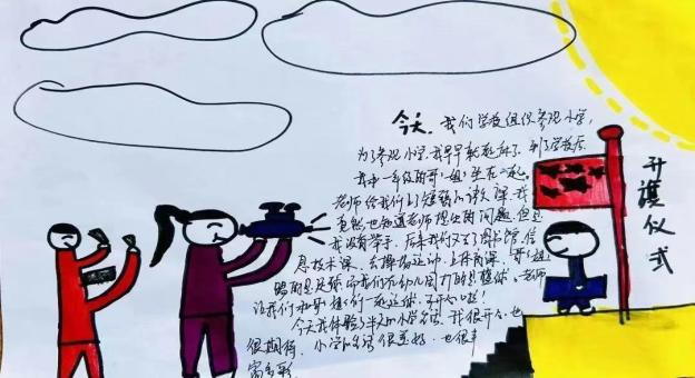 小学参观之旅结束了,但我们仍然意犹未尽,纷纷畅谈自己见到的小学。我见到的小学与幼儿园有什么不同呢?我们幼儿园的房子矮矮的,小学的房子特别高!幼儿园我们一个小组坐一张桌子,小学的哥哥姐姐每个人一张桌子,哥哥姐姐的桌子还有小抽屉.....“回到幼儿园,我们也用小小的画笔将自己看到的、听到的记录下来,和同伴一起分享交流参观小学后的大发现。”