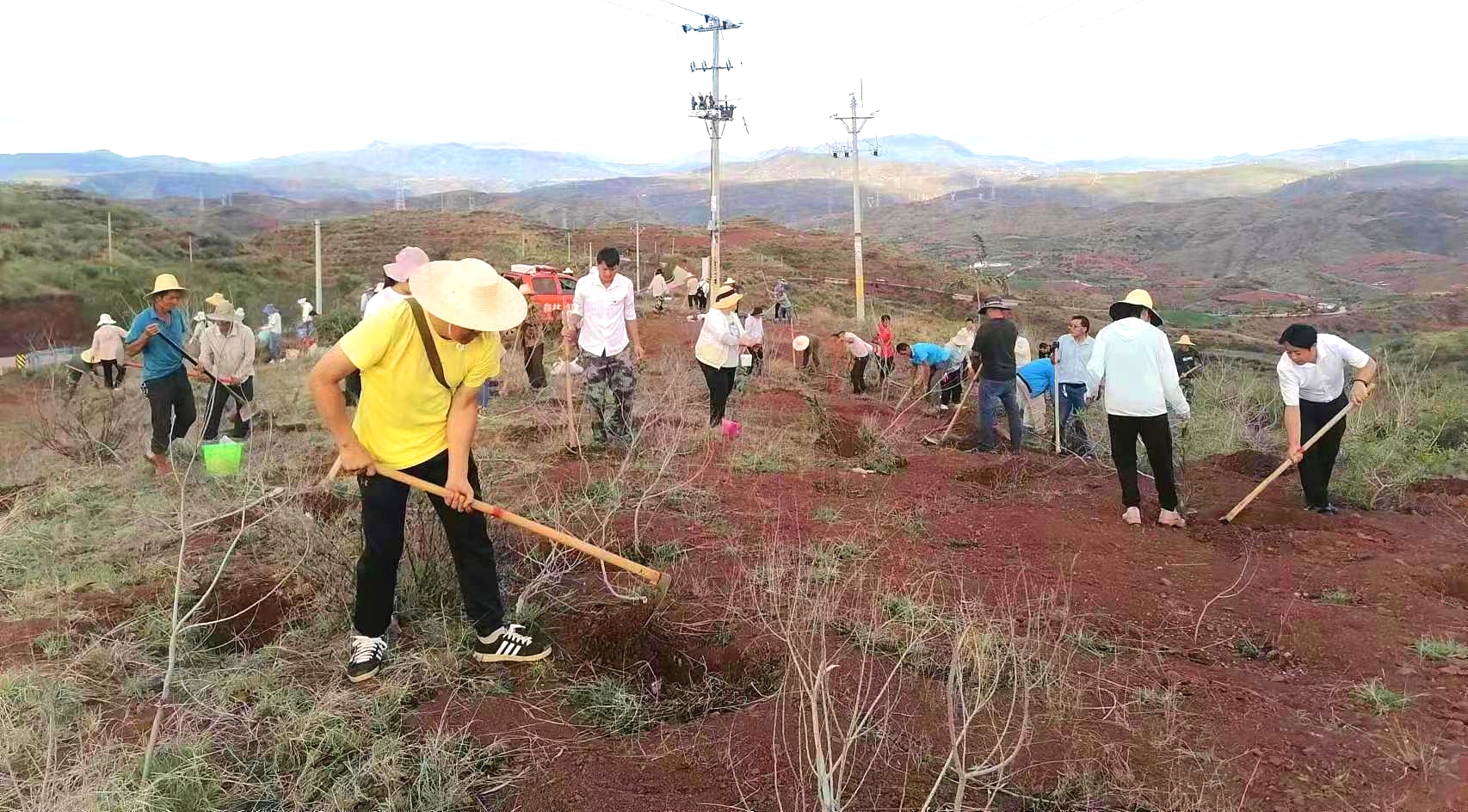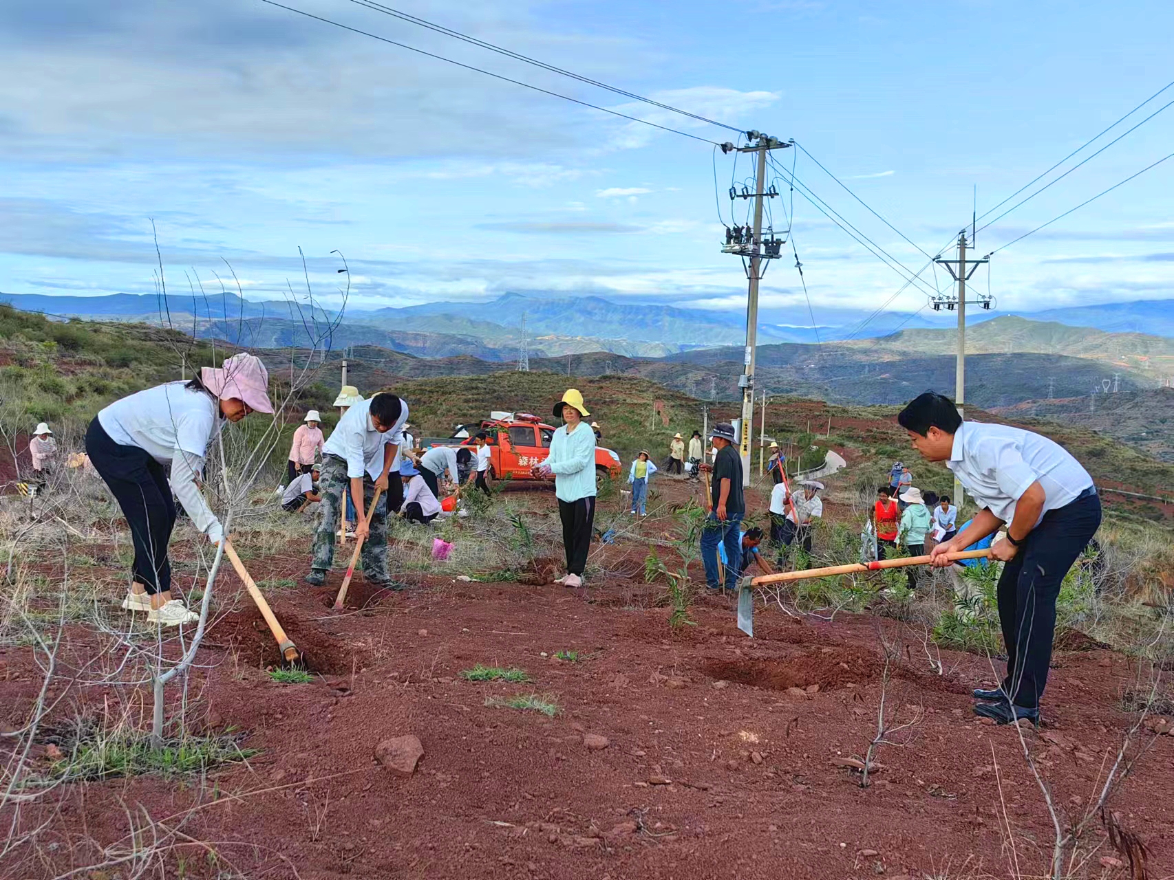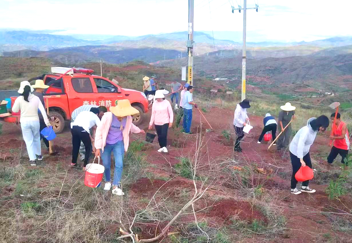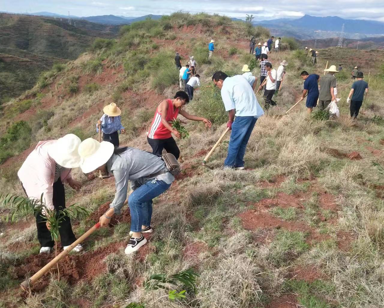 经过护林员的指导大家两人一队、三人一组相互协作,个个热情洋溢、干劲十足,每一个环节、每一个步骤,都密切配合,衔接有序,呈现出一派热火朝天的景象。据统计,本次义务植树活动共栽植了1400余株相思树。