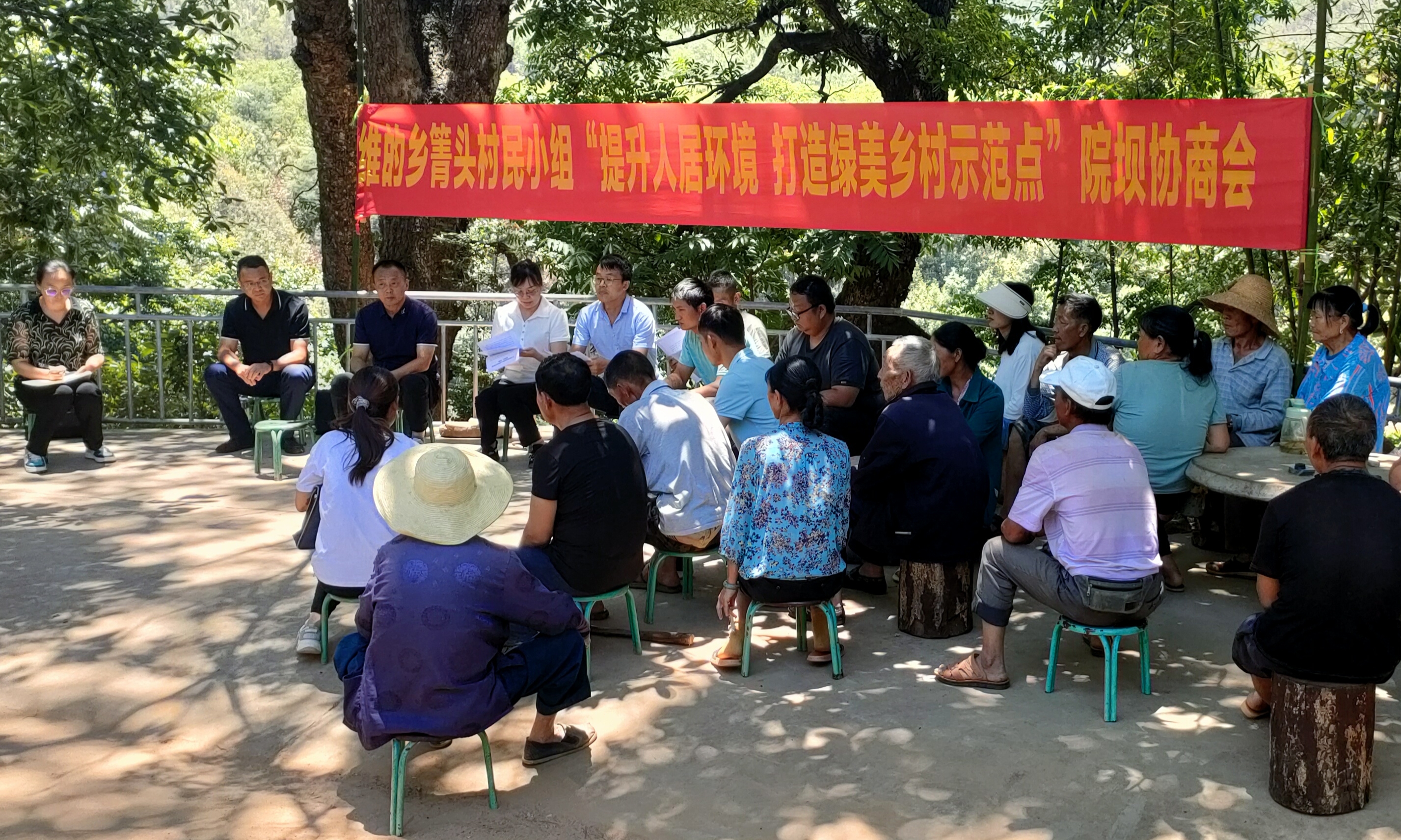 经过广泛深入协商,会议达成六项共识:一是科学编制污水管网规划,积极推进污水治理。按照“支部发动、党员带动、群众主动”的方式,通过召开“三场会”,广泛发动群众参与污水治理。二是实行垃圾分类,从源头减少垃圾数量。增加移动式垃圾箱2组,垃圾清运费人均按照24元/年收取,户用分类垃圾桶自行采购。三是依托制度措施,形成人居环境整治长效机制。严格执行“日清扫”“月保洁”、“周曝光”“月督导”“季考评”、“门前三包”、垃圾清运收费、“红黑榜”、“路长制”等制度,积极引导群众广参与重落实。四是开展“四旁”整治,因地制宜绿化美化 。对“四旁”和“四地”开展五堆十乱清理整治,结合村庄规划布局,按照宜树则树、宜草则草、宜花则花、宜果则果原则,进行绿化美化。五是开展美丽庭院创建,探索发展庭院经济。以“庭院居室环境美”示范户创建为抓手,引导农户积极参与绿美乡村建设,以种植蔬菜、水果等方式发展“庭院经济”。六是做好宣传引导,营造共建共治共享的治理氛围。上下联动,齐抓抓共管,积极引导村民形成决策共谋、发展共建、建设共管、效果共评、成果共享治理模式。
