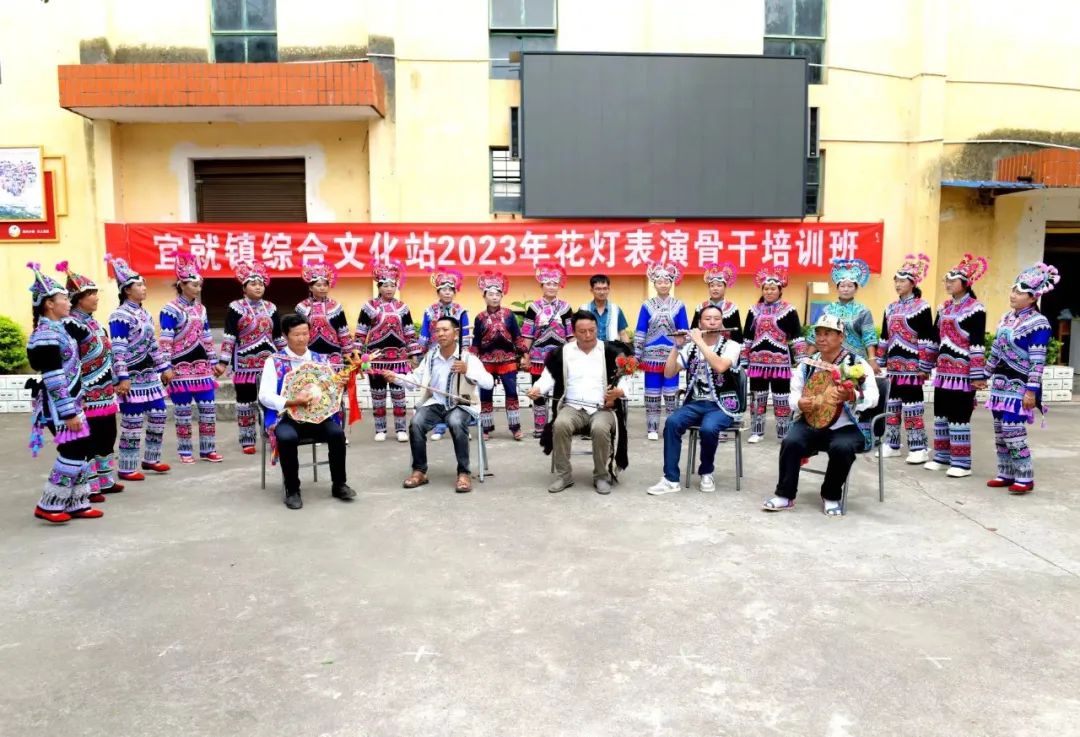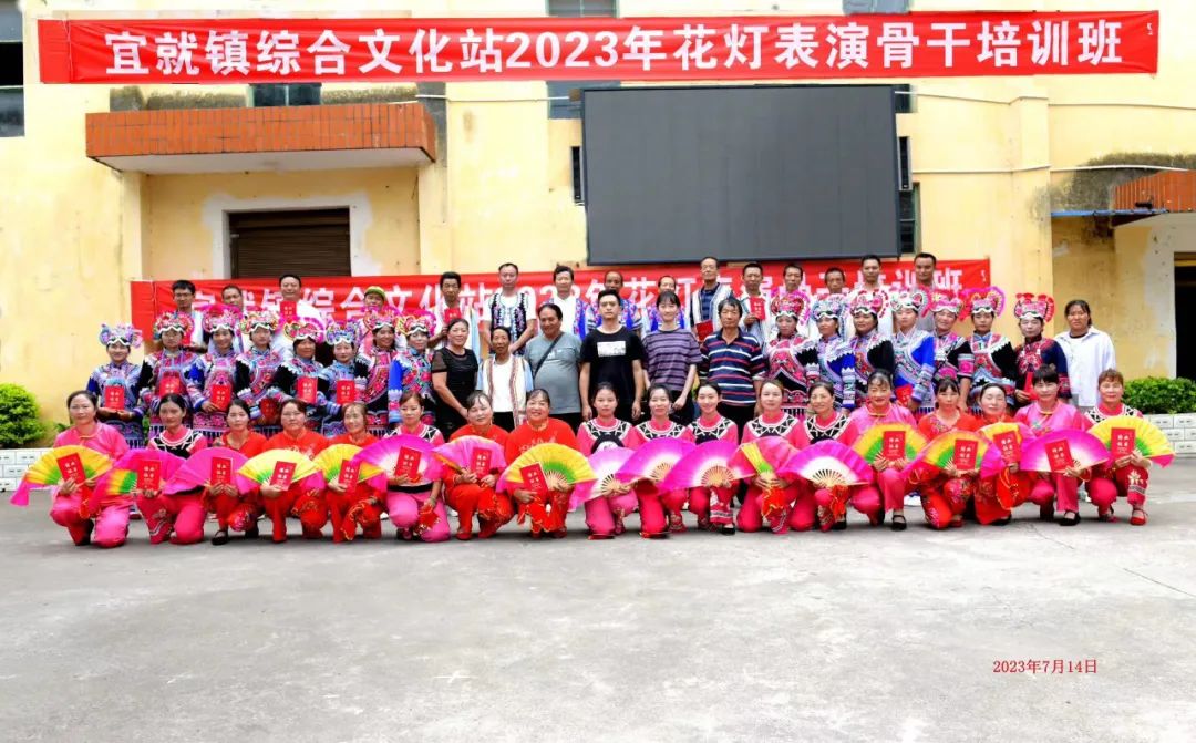 为进一步弘扬社会主义核心价值观,加强宜就镇文化阵地建设,大力营造人文宜就浓厚文化氛围,深入落实“七彩云南情·戏曲进乡村”送戏下乡活动,不断丰富和提升群众精神文化生活,提高全镇基层群众文化队伍中文艺骨干的花灯歌舞表演及指导水平。7月12日至14日,宜就镇举办了2023年花灯表演骨干培训班,镇、村二级文艺队员、非遗项目代表性传承人和文艺爱好者等58余人参加了培训。