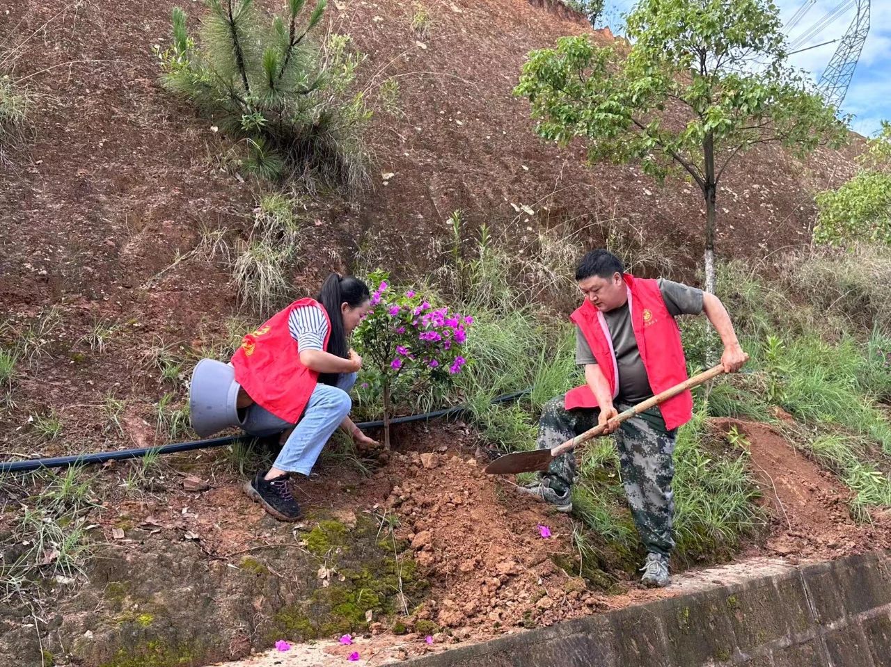 “走,植树去咯”!为深入贯彻习近平生态文明思想,积极践行“绿水青山就是金山银山”绿色发展理念,7月21日,宜就镇组织开展2023年“绿美行动”全民义务植树活动,充分发挥基层党组织战斗堡垒作用和党员先锋模范作用,依托宜就镇新时代文明实践所,通过党员干部示范带动,志愿者主动参与,激发群众“植绿增绿护绿”的积极性,全面推进绿美宜就建设,全体干部职工沿南永公路拉利坪至宜就段共栽植了三角梅600余株。