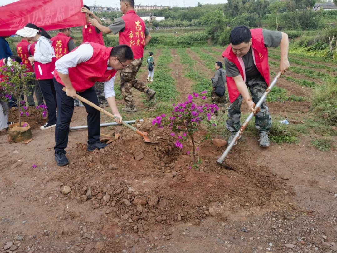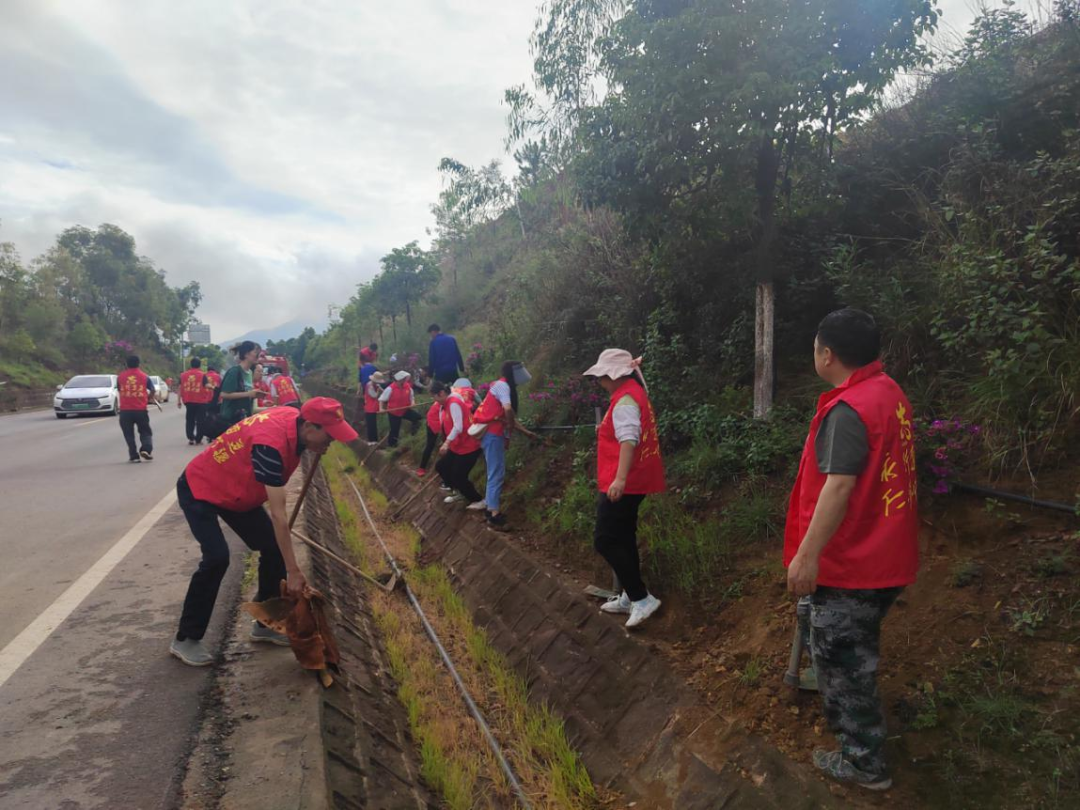 党员干部齐参与打造绿美公路。党员带头,一名党员就是一面旗帜。本次义务植树活动由钟廷伟书记、黄龙镇长带队,宜就镇全体职工组成的60余名志愿者队伍,高举党旗,亮明党员身份,发挥先锋作用,全体志愿者手拿锄头、铁锹等工具,齐心协力沿公路种下600余株三角梅,并清理了公路沿途垃圾,用实际行动助力宜就绿美公路建设。