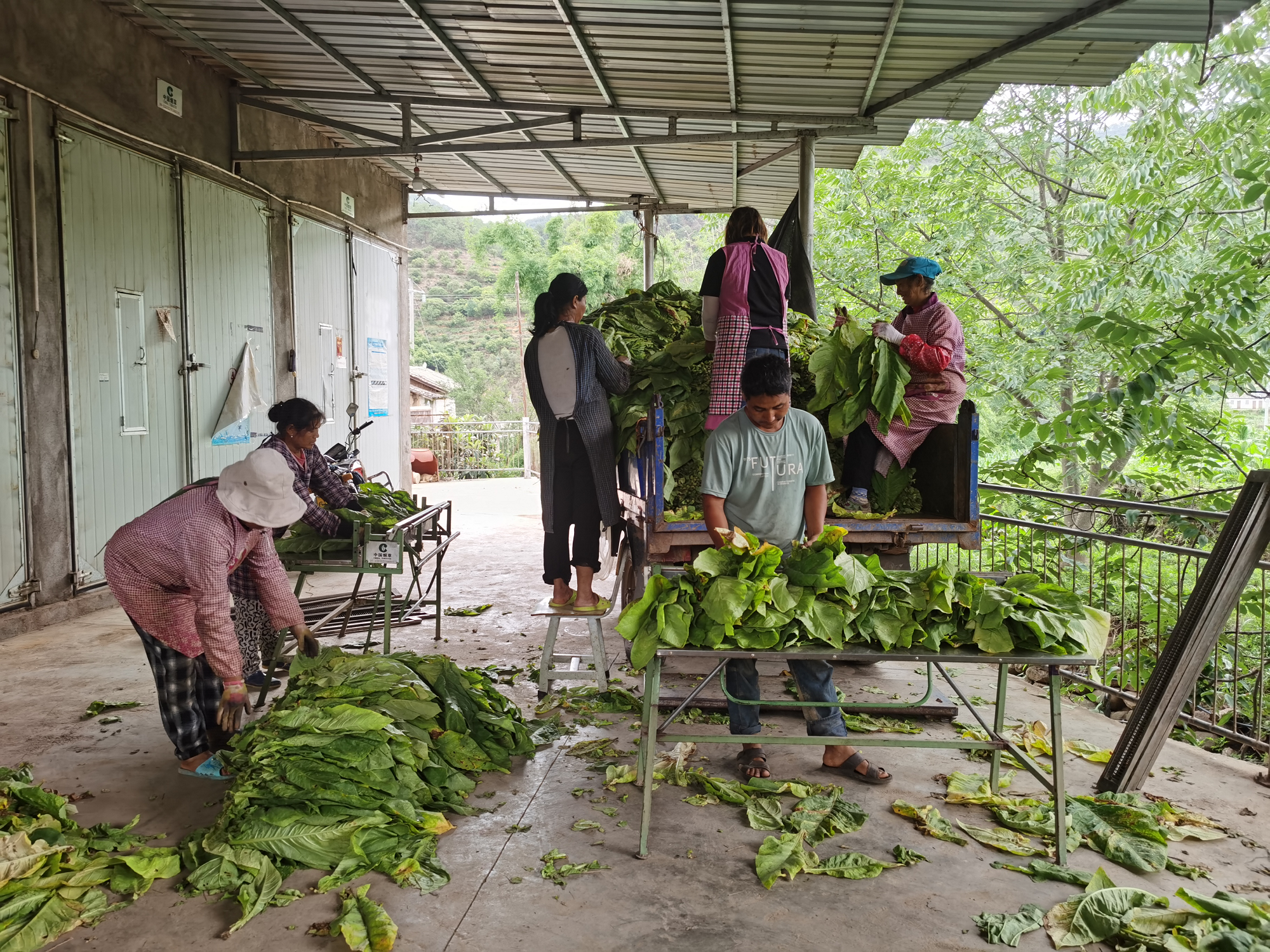 走进中和镇直那村800亩连片烤烟基地,漫山遍野的烟株枝繁叶茂,在微风的吹拂下随风飘动,长势十分喜人。烟田里,烟农们正穿梭在烟叶丛中,熟练地对已成熟的烟叶进行采摘、捆扎、装车烘烤。