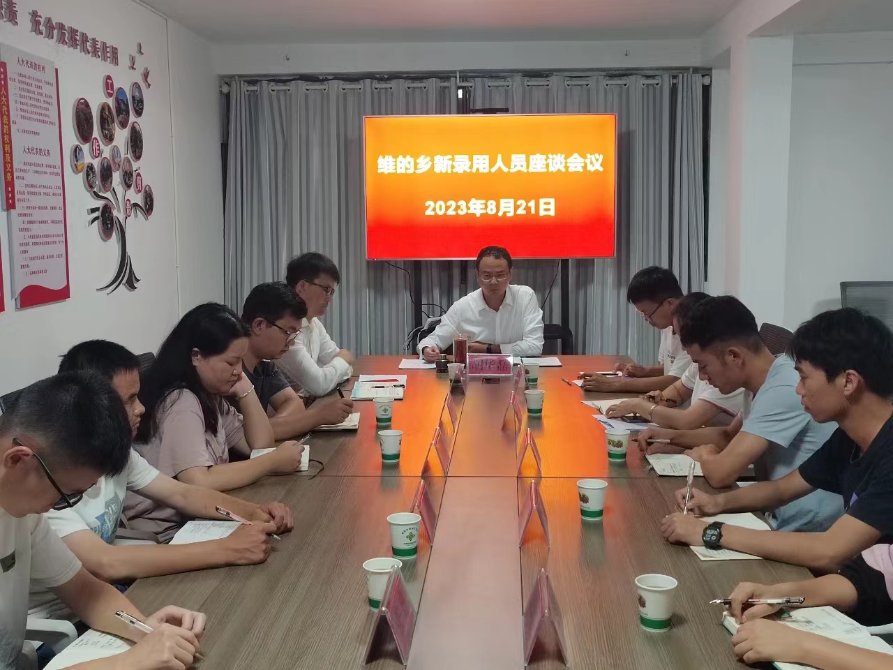 8月21日晚,维的乡开展新录用人员座谈会议,乡党委书记胡华磊,党委副书记仁德军,副乡长刘国军出席。