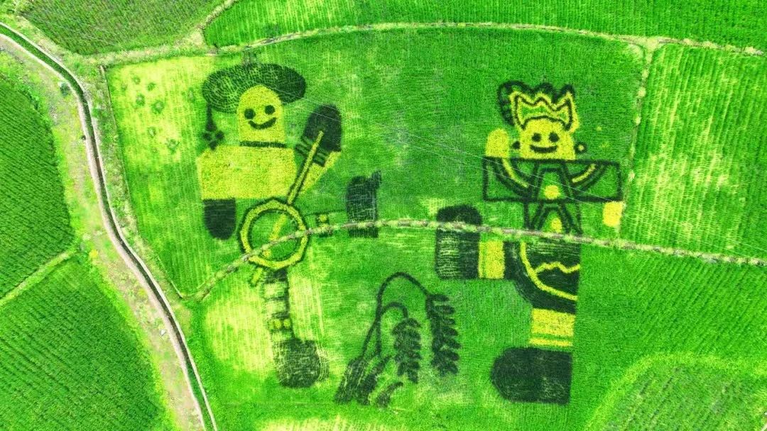 外普拉保留了最古朴的传统村落风貌,有着丰富的乡村旅游观光资源,同时保留了人工水稻种植的传统生产方式,每个季节在外普拉的稻田里都有不同的景色,外普拉的儿女用大自然的馈赠,把如今的幸福生活、美好愿望绘在稻田里。每年的3月,大家就集思广益,开始构思设计外普拉生态稻田画作的主题、图案,把外普拉最美乡愁、人文特点、民族文化等用彩色生态水稻图画展现出来。待到插秧的日子,村民和志愿者按照设计好的图画,把不同品种的水稻插在预先标记好的位置上。以绿色的水稻作为“画布”背景,执黑紫黄红等不同颜色的彩色品种为“画笔”,以草扎的精神,在画布上绘出原始质朴的图案。