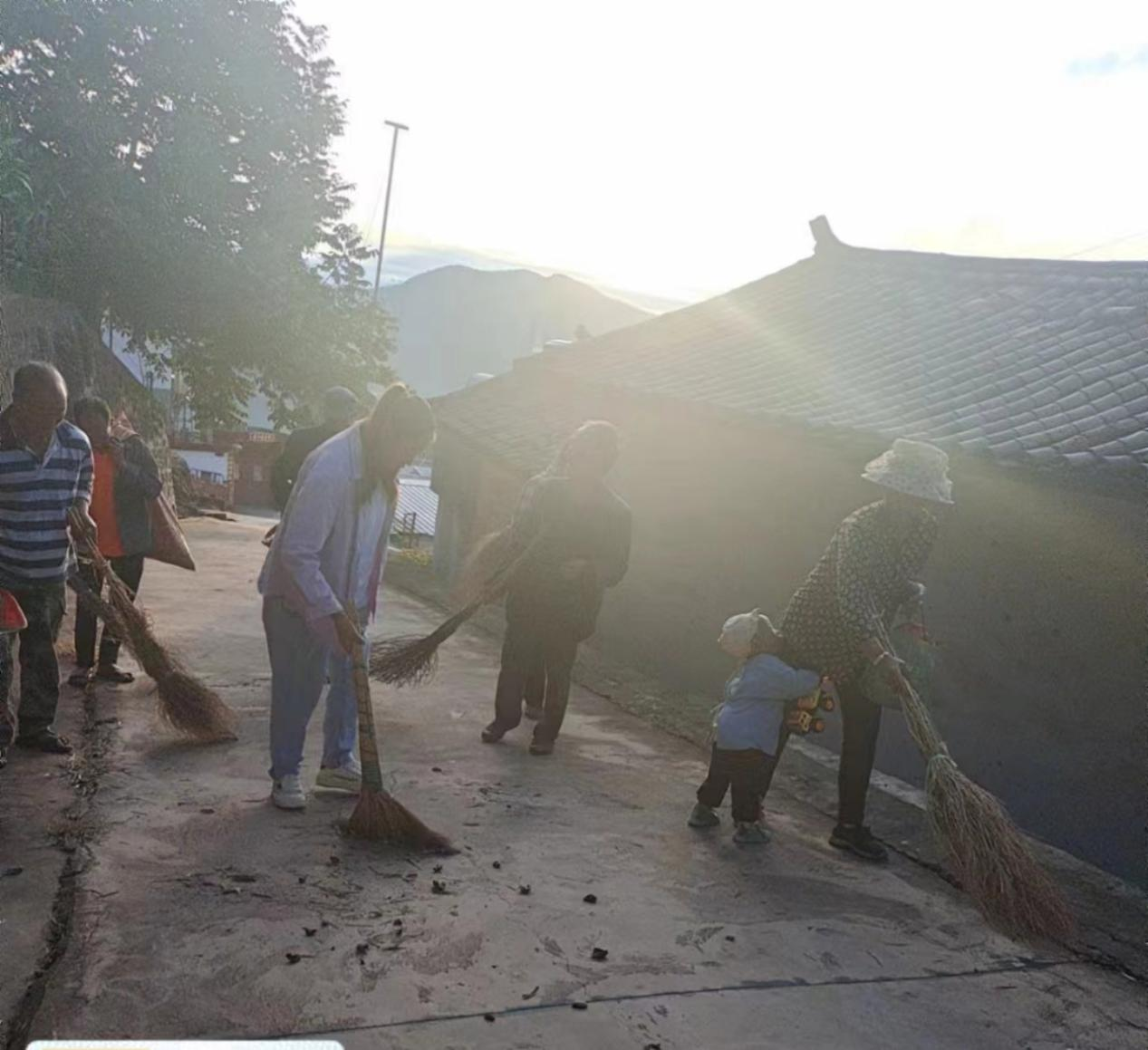 天刚微亮,他克村就有村民早早起床,自觉开始打扫打扫村间小道的卫生,甚至一家老小全出动,使得原本“冷清”的小巷“顿时”热闹起来。