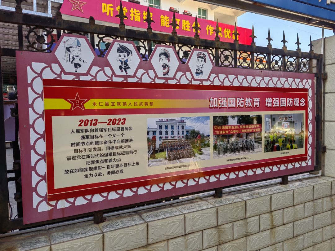 走进镇武装部新址,临街武装元素丰富,临街展板按照国防教育、征兵宣传、民兵风采、退役军人、综合救援五个模块,充分展示了征集新兵、建强民兵、服务老兵工作成效,凸显了人民武装为人民的核心理念。
