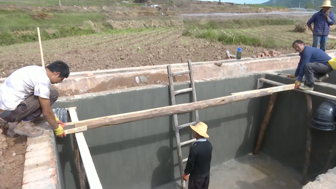 在他克村他克二组,几位擅长木工活计的群众正在为他们的氧化塘支木。为首的罗师傅正是他克二组的小组长。他多次挨家挨户地入门宣传,以“一人带多人、一户带多户”的方式,引导群众发挥自己的生活技能,为家乡“两污”治理工程添砖加瓦。