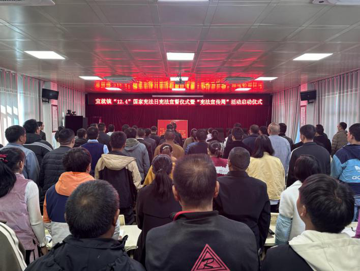 为深入学习贯彻习近平法治思想,弘扬宪法精神,维护宪法权威,进一步强化国家公职人员宪法意识,营造学习宪法、宣传宪法、遵守宪法、维护宪法的良好氛围,12月4日上午,宜就镇开展“12.4”宪法宣誓仪式暨宪法宣传周启动仪式,并通过宜就镇“法治微讲堂”举行了宪法宣传周法律宣传讲座。镇党政班子成员、村四职、驻村第一书记、部分县镇两级人大代表参加活动。