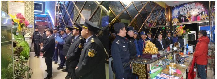 开展专项检查。联合综治办、派出所、市监所、文化站、综合行政执法队、综合救援服务中心组成夜巡小队深入辖区开展“大清查、大整治”,对全镇旅馆、KTV、宾馆、酒店、夜宵摊点等重点场所进行排查防控,同时强化经营场所规范经营行为,牢固树立安全经营理念,积极引导群众主动参与维护社会稳定,全民齐心协力,进一步提升群众的安全感、幸福感。