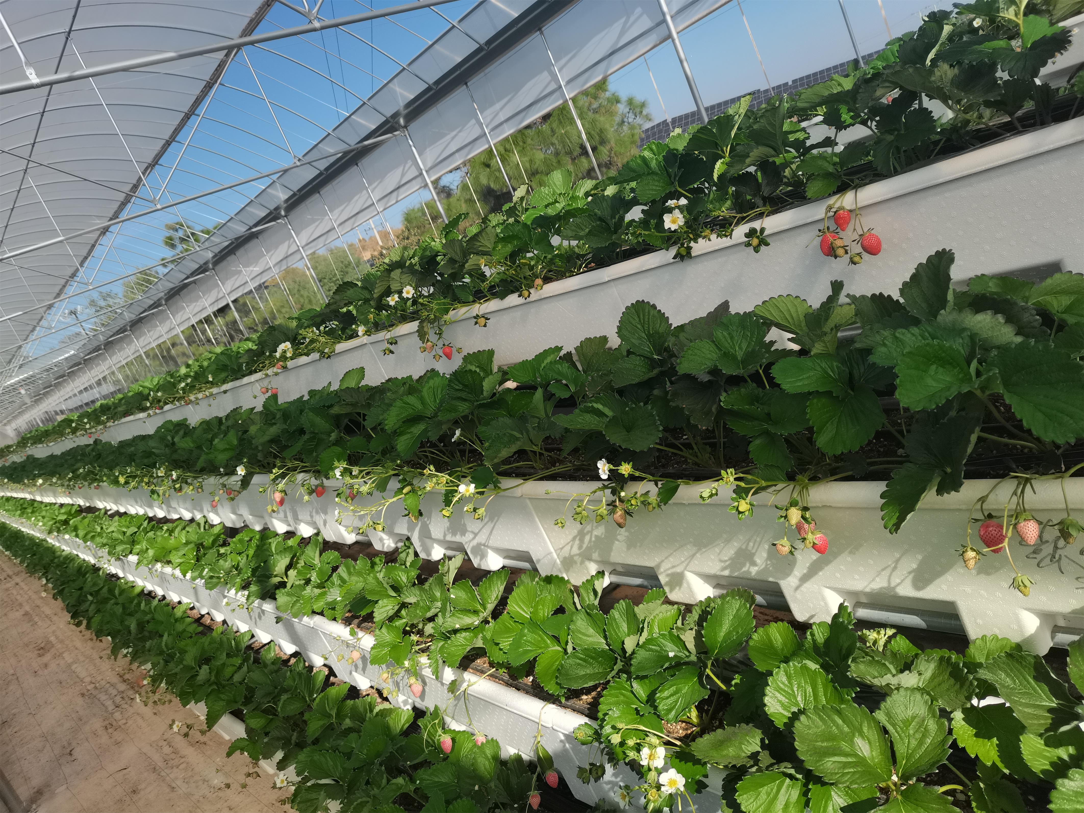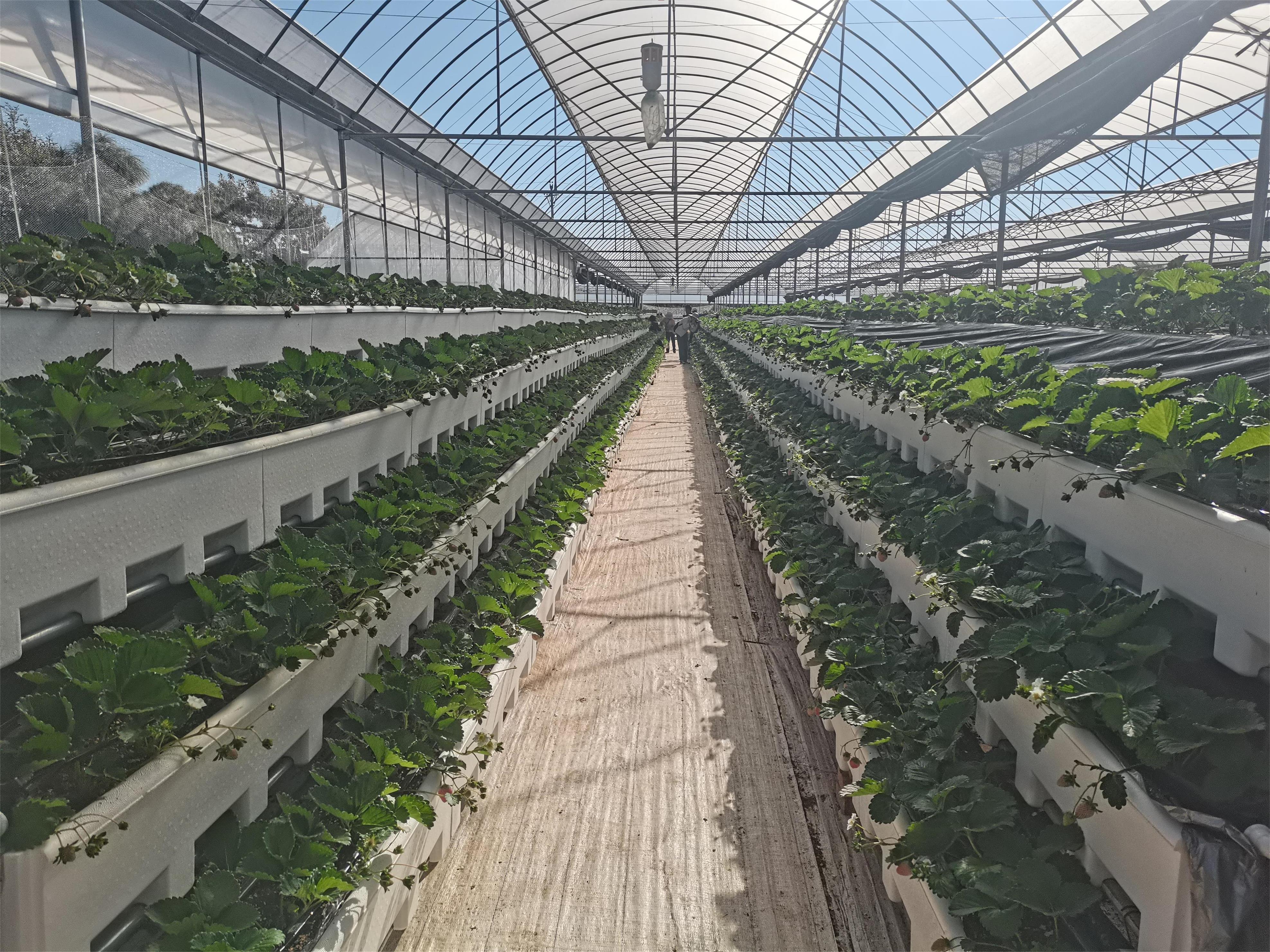 据他介绍,一方面高架草莓克服了传统草莓采摘不方便的问题。高架草莓培植于“半空”,不需要游客进行弯腰采摘,大大提升了采摘体验。另一方面,高架草莓可以大大节省在劳动力与后期管理方面的投入成本,进而显著提升收益。除此之外,高架草莓的空间利用率也远远高于传统草莓,高架草莓是一个立体空间,而传统种植的草莓是一个平面,因此,高架草莓的单位产量必定高于传统地面种植的草莓。在杨桂平的阳光草莓采摘园内种有梦之莹、香野、粉玉1号、天使8号、雪兔、黑珍珠、红颜7个草莓品种。他种的高架草莓采用立体种植空间,其通风性和透光条件皆优于传统地面种植草莓,有了充足的光照与生长空间,草莓果实的颜色会更加均匀,硬度会更高,品质也会更好。对于消费者担心的农残问题,杨桂平说:“这种种植方式可以有效地避免土传病害和连作障碍,草莓多施用农家肥和有机肥,农药化肥的用量大大降低,保障了草莓的绿色健康。”