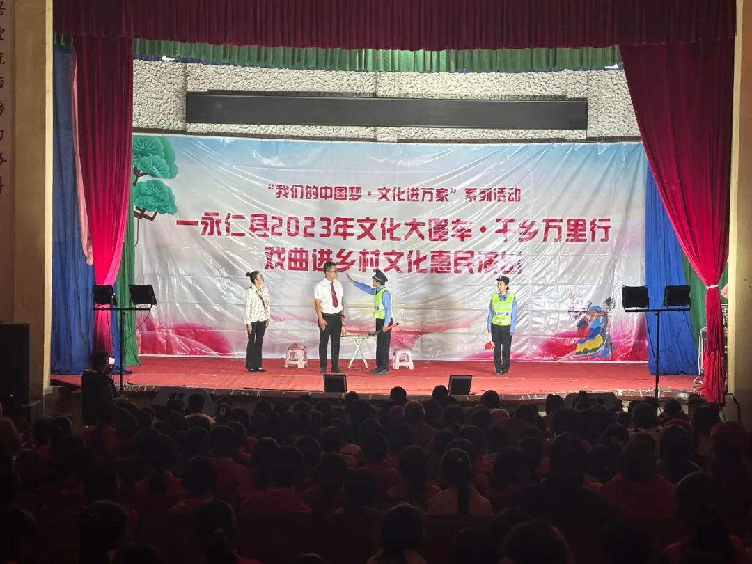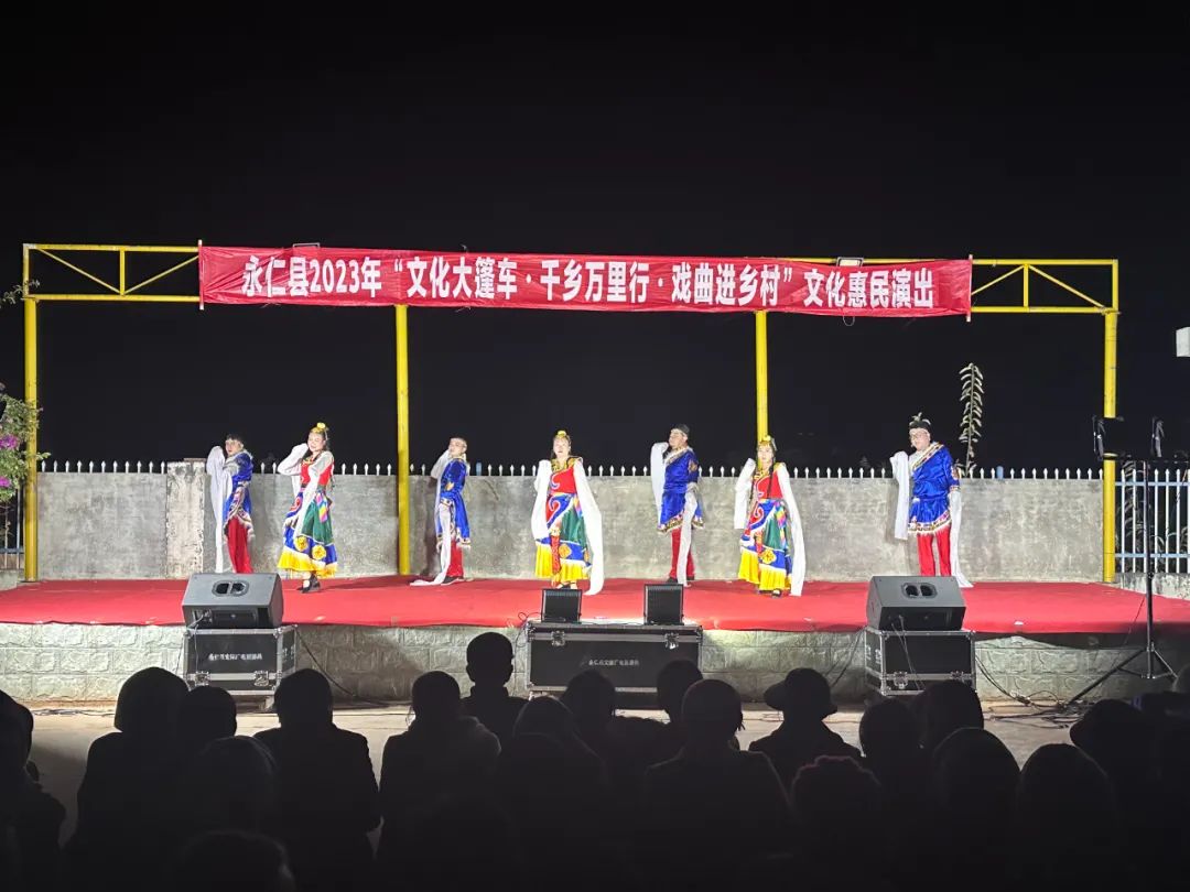 近日,为进一步弘扬优秀传统文化,丰富广大群众精神文化生活,提升社会审美情趣,永仁县文工团、宜就镇文化站组织3支文艺团队到6个村委会进行文艺汇演,将一场场精彩的文艺节目表演送到群众家门口,让600余民村民群众在家门口享受到了精美的“文化大餐”。