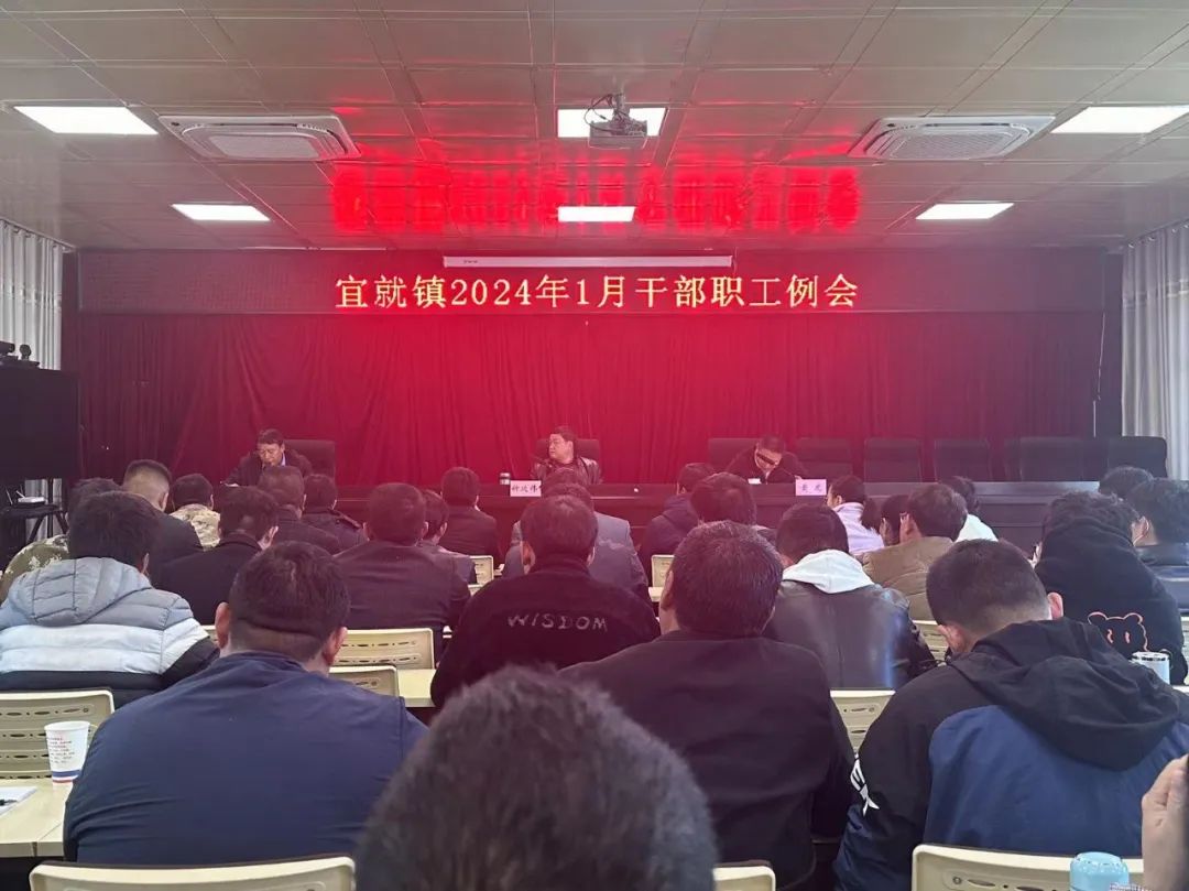 2024年1月2日,宜就镇召开2024年1月工作例会。会议由宜就镇党委书记钟廷伟主持,镇全体干部职工,各村村四职、驻村第一书记参加会议。