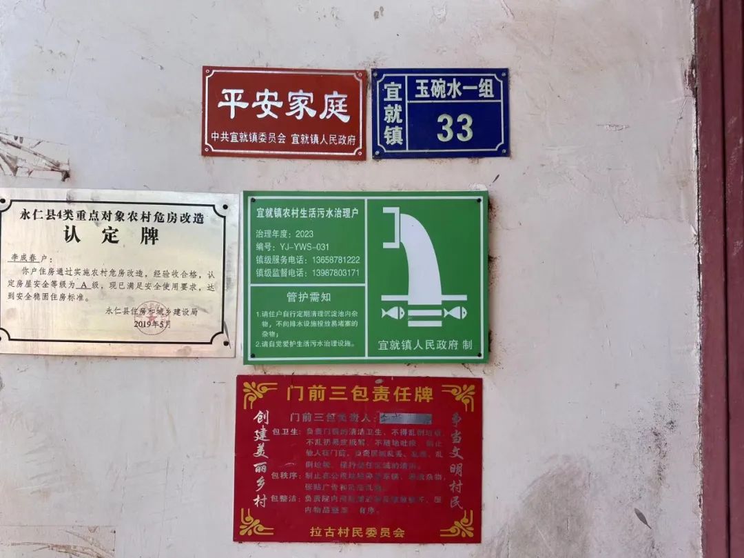 制定安装治理户标识牌。按照“一户一牌”原则,对污水治理达标的住户全部贴牌公示,内容包括:治理年度、治理户编码、户管护须知、县镇村三级服务保障电话张贴治理户标识牌,便于分辨治理达标户,验证村庄治理覆盖率,方便群众反映服务需求,主动接受社会各界监督。