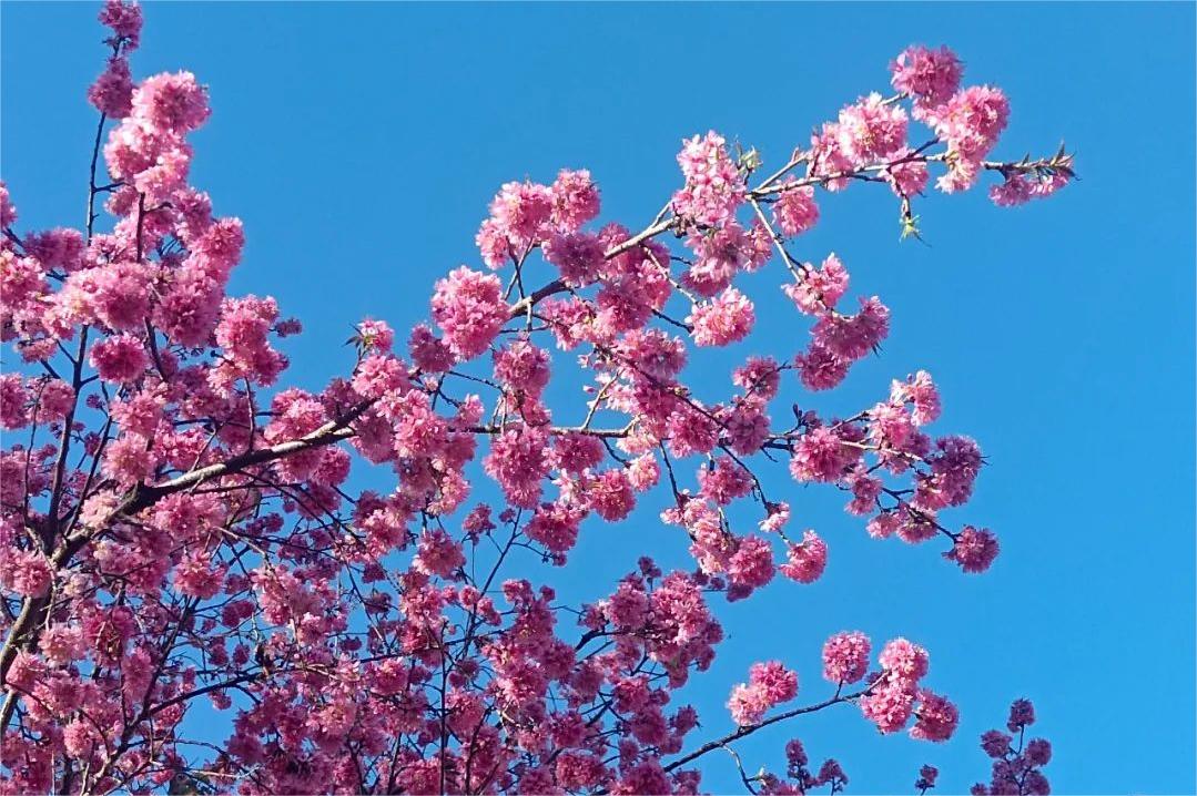 冬至刚过,天气还处于半冷半暖之际,猛虎乡的樱花早已盛开,一朵朵粉色的樱花,正大方展现它的美。