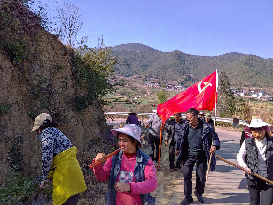 在家的老党员们平均年龄40多岁,可干活劲头丝毫不比年轻人差。大家分工明确,“兵分两路”相互配合,一队人负责拿工具铲除路边杂草、给树苗松土,另一队负责浇水灌溉,路上到处都是党员忙碌的身影,经过一下午的努力,近2公里道路两旁的绿化树生机盎然,焕然一新。