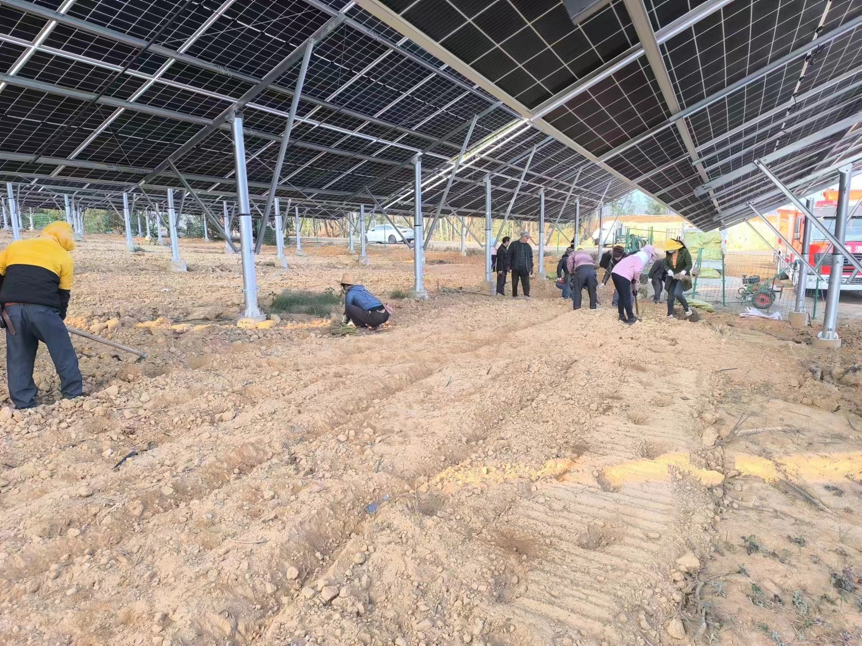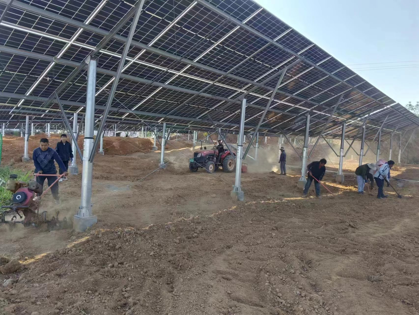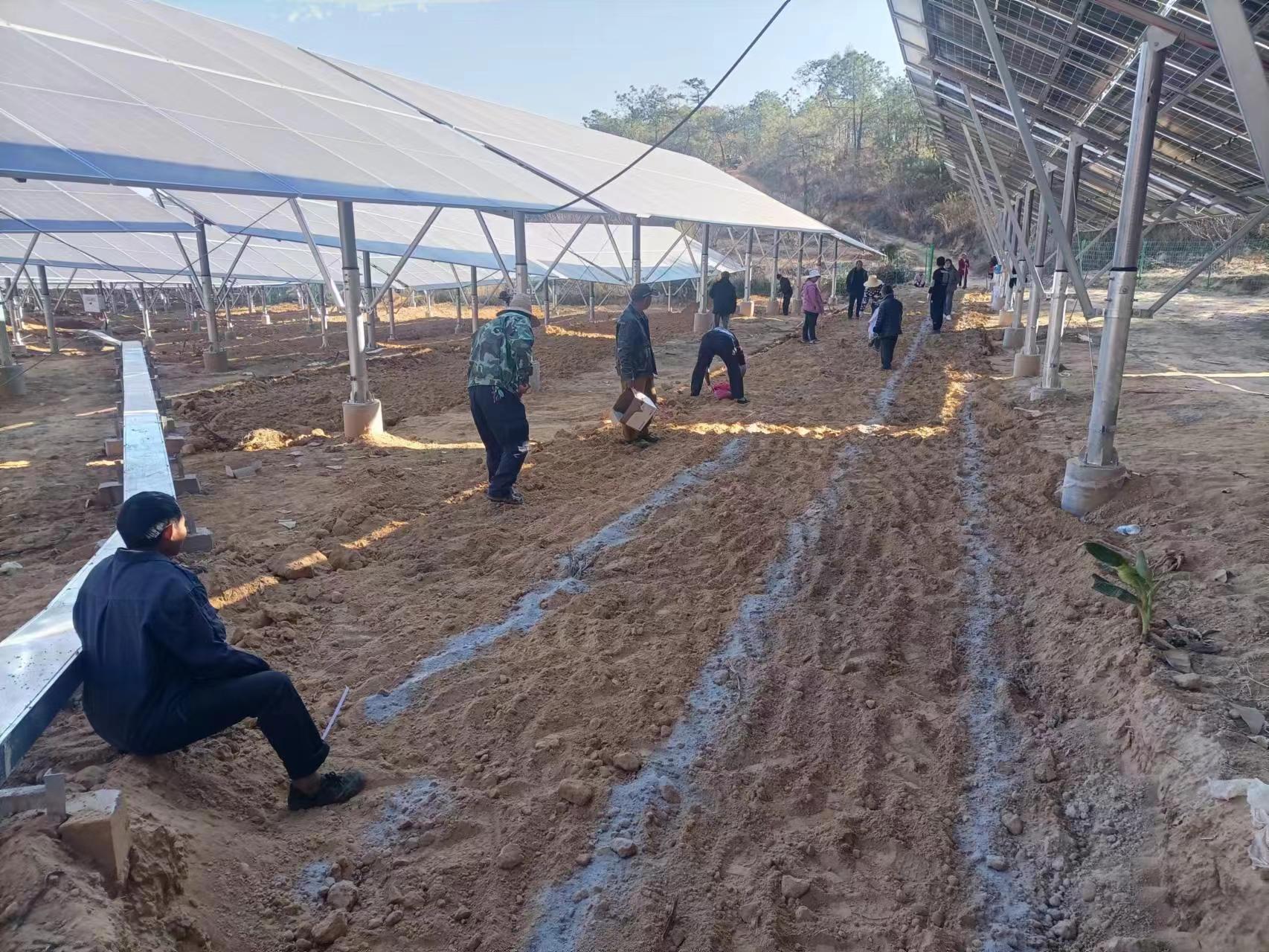 小年至,新春始,天气回暖,莲池乡班别、勐莲大片大片的光伏板下随处可见热火朝天的劳动景象。一沟沟一垄垄整齐的桑树苗代替了原来的荒草坡,生机与活力在光伏板下迅速蔓延。