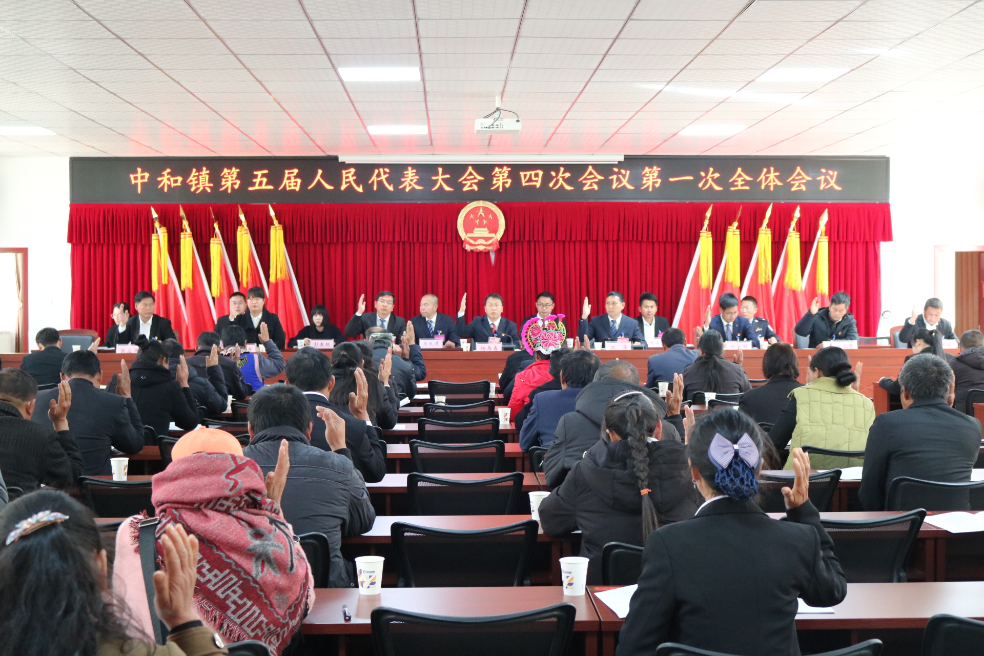 2024年1月24日下午14:30,中和镇第五届人民代表大会第四次会议在庄严的国歌声中隆重开幕。会场内,气氛庄重热烈,来自全镇各村、各行业的代表,怀揣着民意,肩负着重任,汇聚一堂勇担使命,依法履行神圣职责。