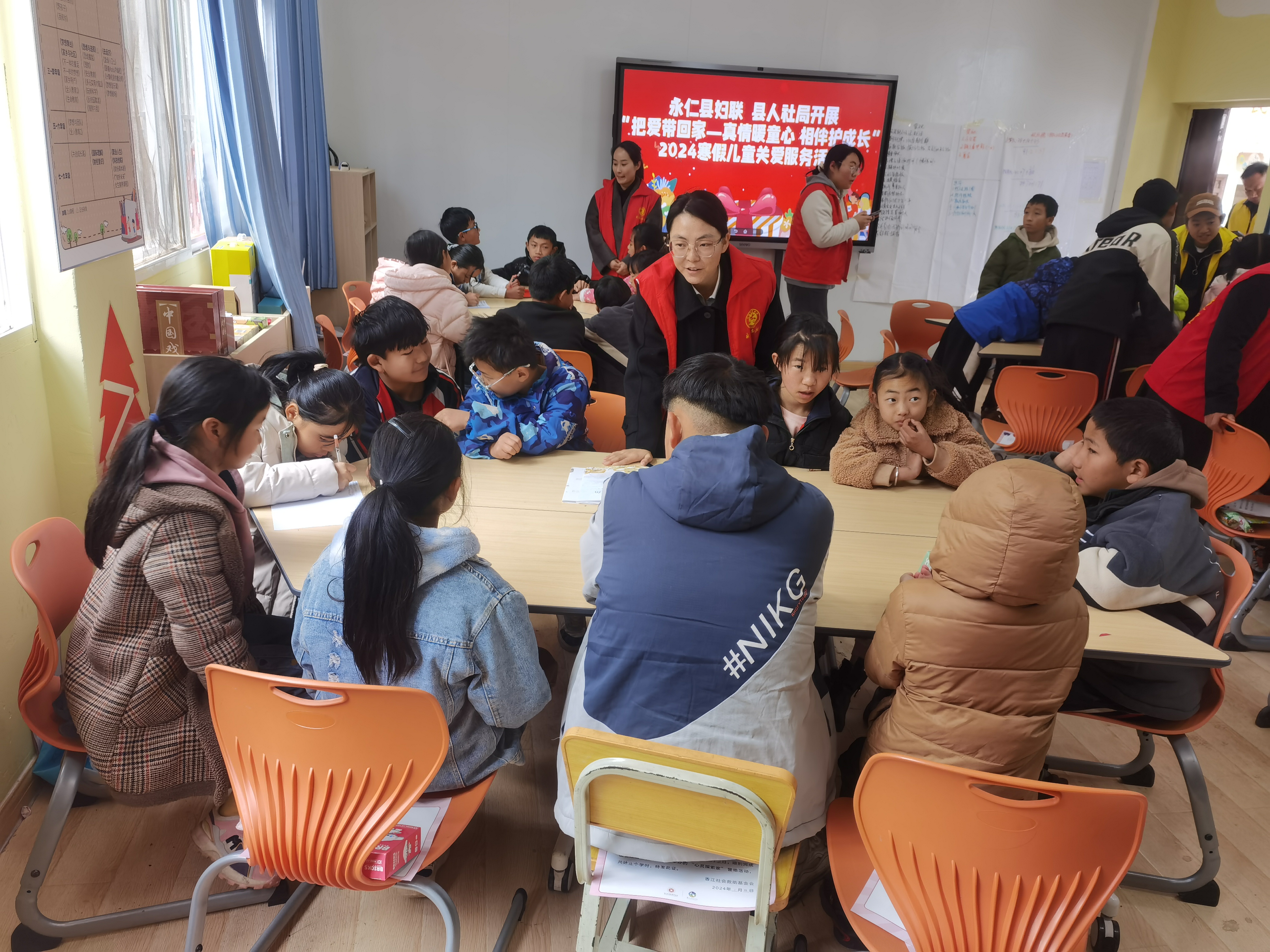 近日,县妇联联合县人社局到中和中心小学开展“把爱带回家——真情暖童心 相伴护成长”2024年寒假留守儿童关爱服务活动,助力广大儿童度过一个安全健康、温暖祥和的快乐假期。县妇联、县人社局工作人员,镇村巾帼志愿者,小学儿童等近60人参加活动。