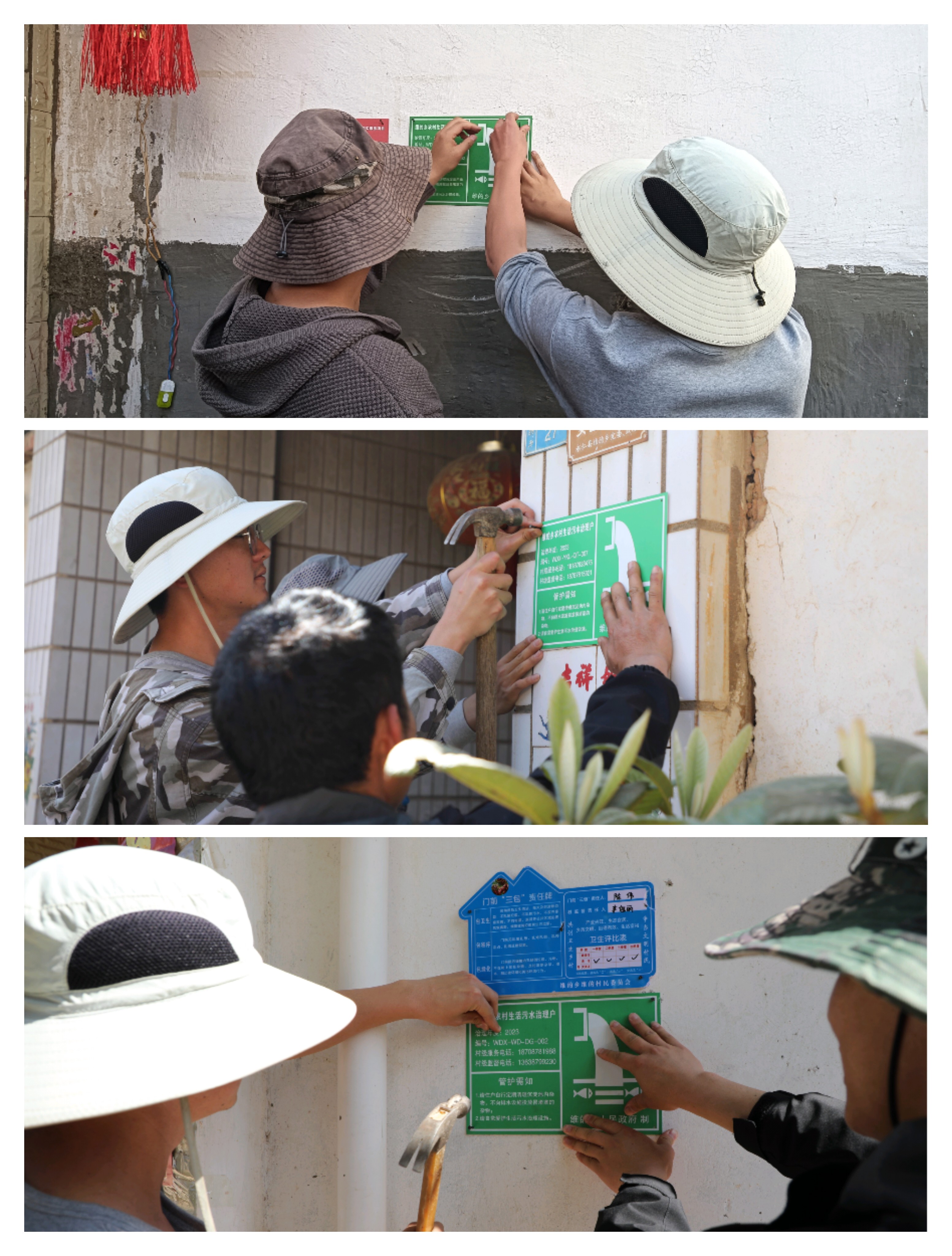 随后各村之间开展交叉互评,针对户收集雨污分流、集水收水等改造情况,验收合格农户悬挂农村生活污水治理户牌。