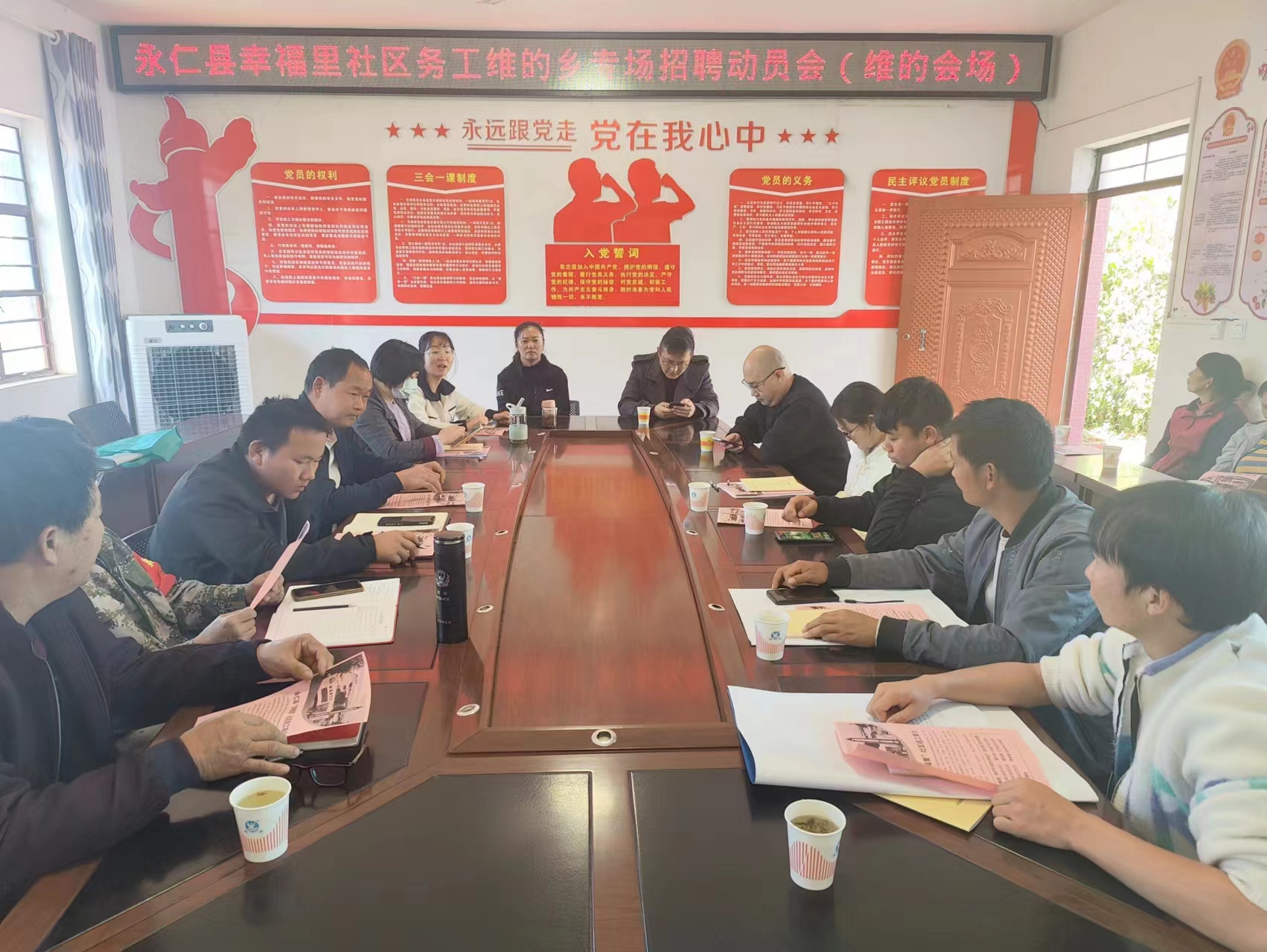 就业是民生之本,乐业才能安居。为切实解决维的群众就近就业难题,稳住农村就业和农民增收,充分利用好“幸福里”社区新型劳务用工平台资源,积极引导农村富余劳动力到“幸福里”社区务工。我乡紧抓春节前后大量农民工返乡的有利时机,于2月20日召开“永仁县幸福里社区务工维的乡专场招聘动员会”,精准发力开展“幸福里”社区务工宣传动员,返乡务工人员60余人参加了座谈会。