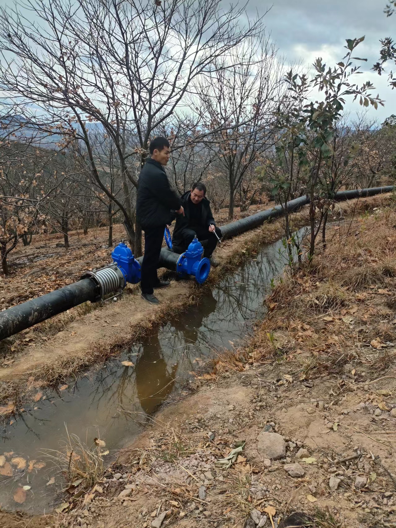组织开展一批生产自救,奠定群众增收基础。对全乡4.01万亩的板栗开展提质增效行动,邀请河北迁西板栗管理专家史正宽到乡上开展5场次板栗冬季管理培训,通过对板栗修枝整形,减少无效枝条对土壤水分的吸收,确保板栗稳产、增产。同时引导群众及时调整农业产业结构,优先规划种植耐旱、需水量少的农作物,鼓励利用微灌、滴灌、喷灌等节水灌溉技术,提高水资源利用效率。目前全乡的板栗、樱桃、桃子等经济林果已有3000余亩采用节水灌溉技术。在保障人畜饮水安全的基础上,全力保障经济林果和烤烟等农业生产。