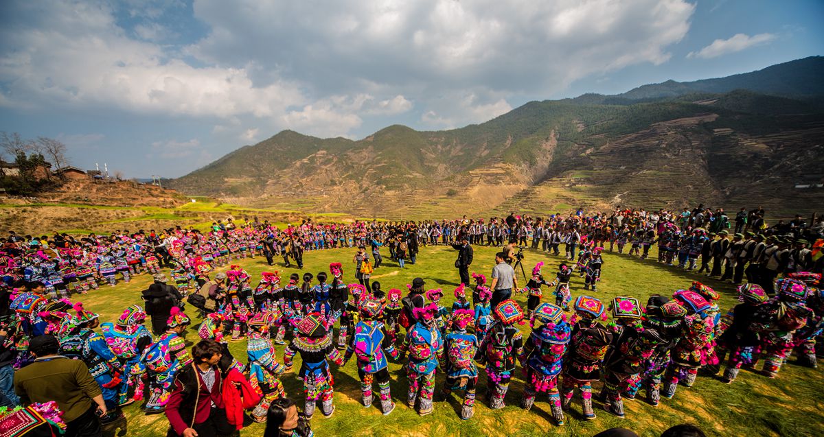 在永仁县中和镇,有一处千年彝族村落——直苴村,它距离县城67公里,南与大姚县昙华乡接壤,西与大姚县桂花乡相邻。直苴村彝族人口占比达98%,彝族文化底蕴丰厚,素有“梅葛故里、赛装节起源地、彝绣圣地、臧金贵纪念碑所在地”之美誉,是石羊白盐井通往蜀地古盐道的重要驿站,2023年被列入第六批中国传统村落名录。