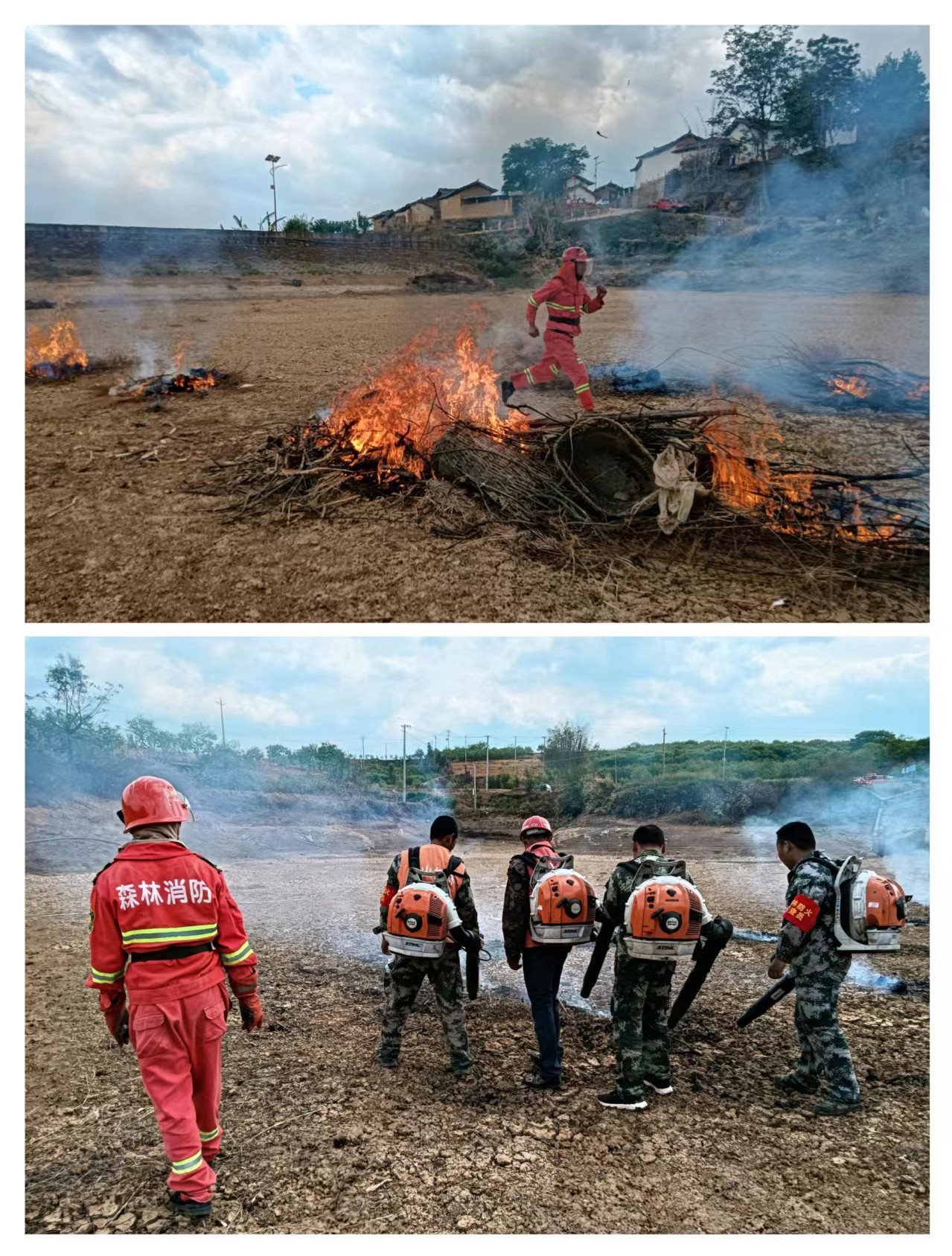 本次实战演练在维的乡夜可腊村委会赶牛坝水库进行,演练分为两大阶段:第一阶段是快速穿越火线。演练前,县综合救援大队教员演示了规范穿越火线的流程,各位扑火队员在指导下迅速进入扑火状态,单人或多人快速穿越多条火线,增强了单兵和团队作战能力。第二阶段是防灭火风机的使用。在大队教员提前示范的基础之上,按照“围点打火、多点打火”的原则,扑火队员对余火进行了吹除扑灭,提升了防灭火器具的熟练程度。