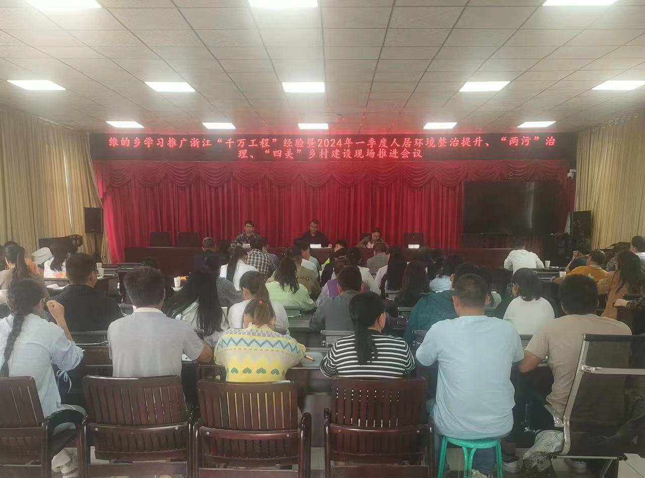 近日,维的乡召开学习推广浙江“千万工程”经验暨2024年一季度人居环境整治提升、“两污”治理、“四美”乡村建设、美丽庭院创建工作现场会,乡党政班子成员,相关站所负责人,7个村村干部,各驻村第一书记,“两污”专班、乡人居办人员等80余人参会。