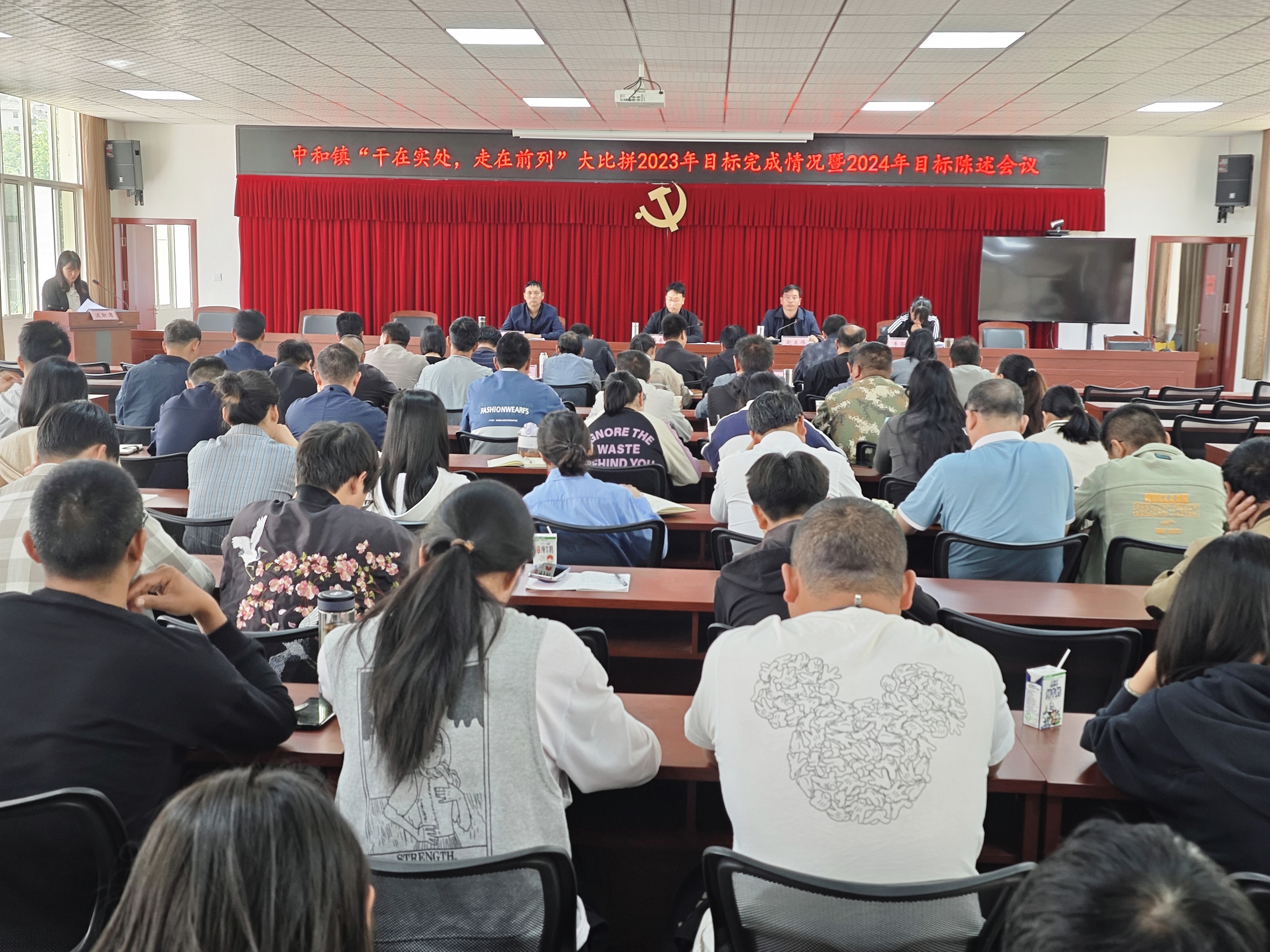一年春作首,万事行为先。4月1日,中和镇召开了“干在实处,走在前列”大比拼2023年目标完成情况及2024年目标陈述会议,全面总结成绩经验,系统部署今后工作。镇党政班子成员,全体干部职工,县管站所负责人,各村书记、监委主任共计90余人参加了会议。会上部分班子成员对领衔事项进行陈述。