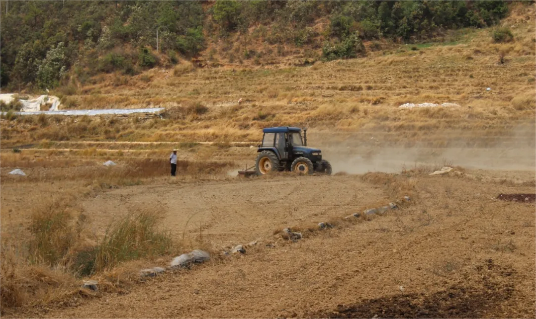在夜吴烤烟预整地现场,大型耕地机在田间轰鸣,不时扬起一阵阵灰土。而在一个月前的现场会上,这里还是堆放着一堆堆营养土的田块……“这是猛虎乡最大的烤烟连片区,必须要在清明节以前将这520亩地放好线,为后面的工作做足准备”烟叶站站长高顺旭说道。“各村要进一步加快烤烟生产预整地工作进度,不能再等了!”乡人大主席团主席倪应彪补充道。