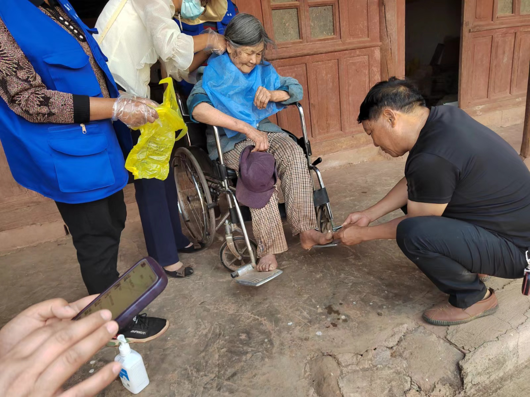 用爱,给农村老年人“溢”点爱。我们常讲“一人失能,全家失衡”,失能老年人的照护不仅意味着子女照护费用成倍增加,还意味着管护人员需要具备护理常识,这些对子女来说是巨大的压力。宜就村立格簸小组79岁老人李奶奶,常年坐在轮椅上,属于“红户”是重点照护、优先服务对象,平时由儿子和儿媳在家照顾她。“自从母亲瘫痪后,我们两口子就在家照顾她,给她换洗衣服、搞个人卫生,现在每隔十天就有医生和专业护理人员上门给我母亲做健康检查、搞个人卫生和家庭卫生还陪她聊天,她心情好起来感觉身体状态都比原来好了,给我们减轻了很大压力”,李奶奶的儿子说。